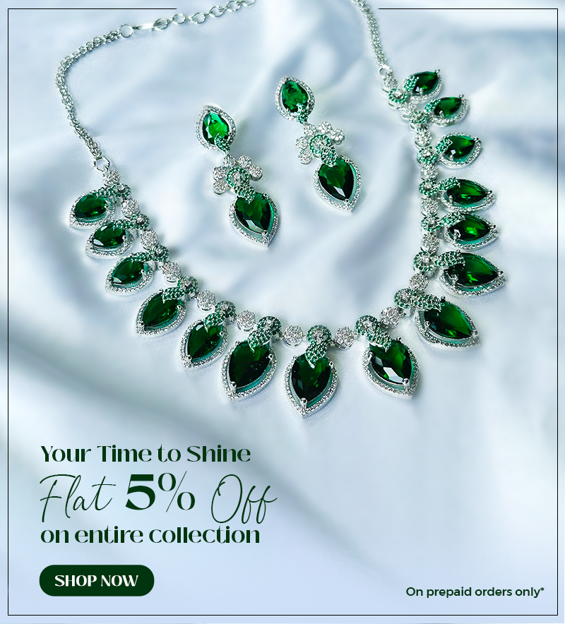 Green Emerald Cubic Zirconia American Diamond Silver Plated Pendant Set