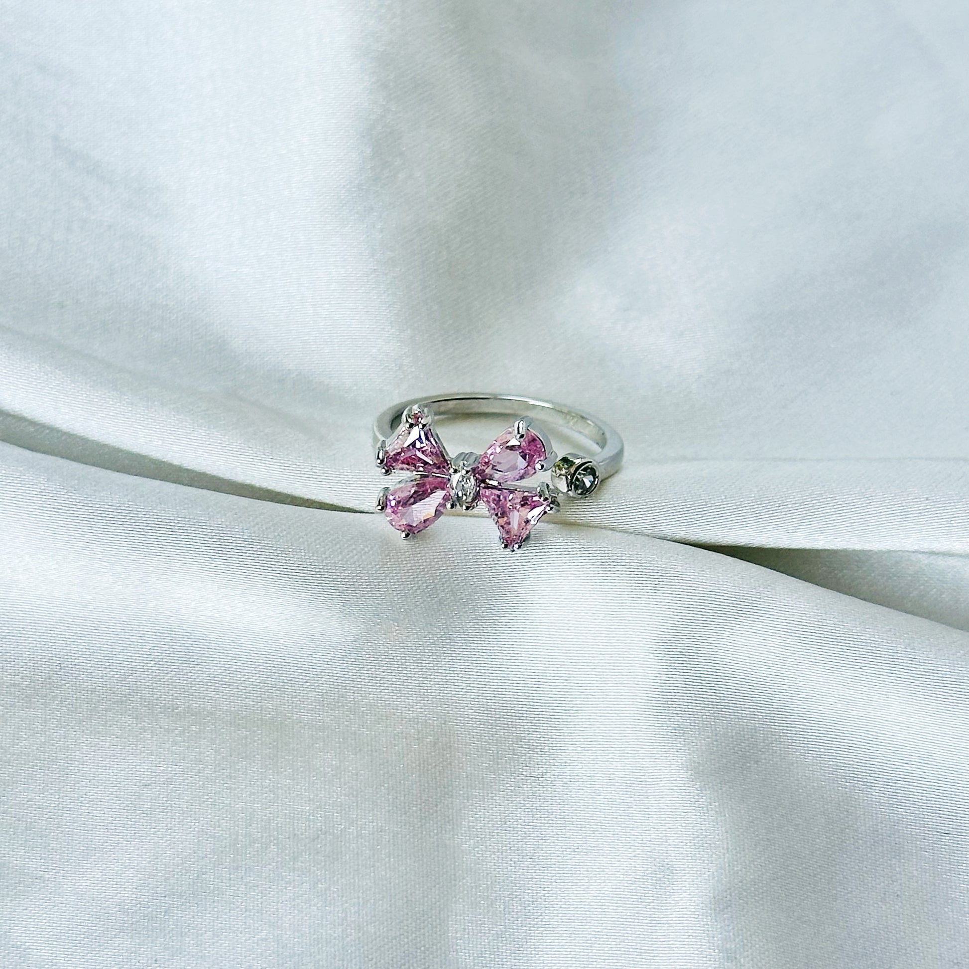 Blush Pink Inspired CZ Silver-Plated Adjustable Ring