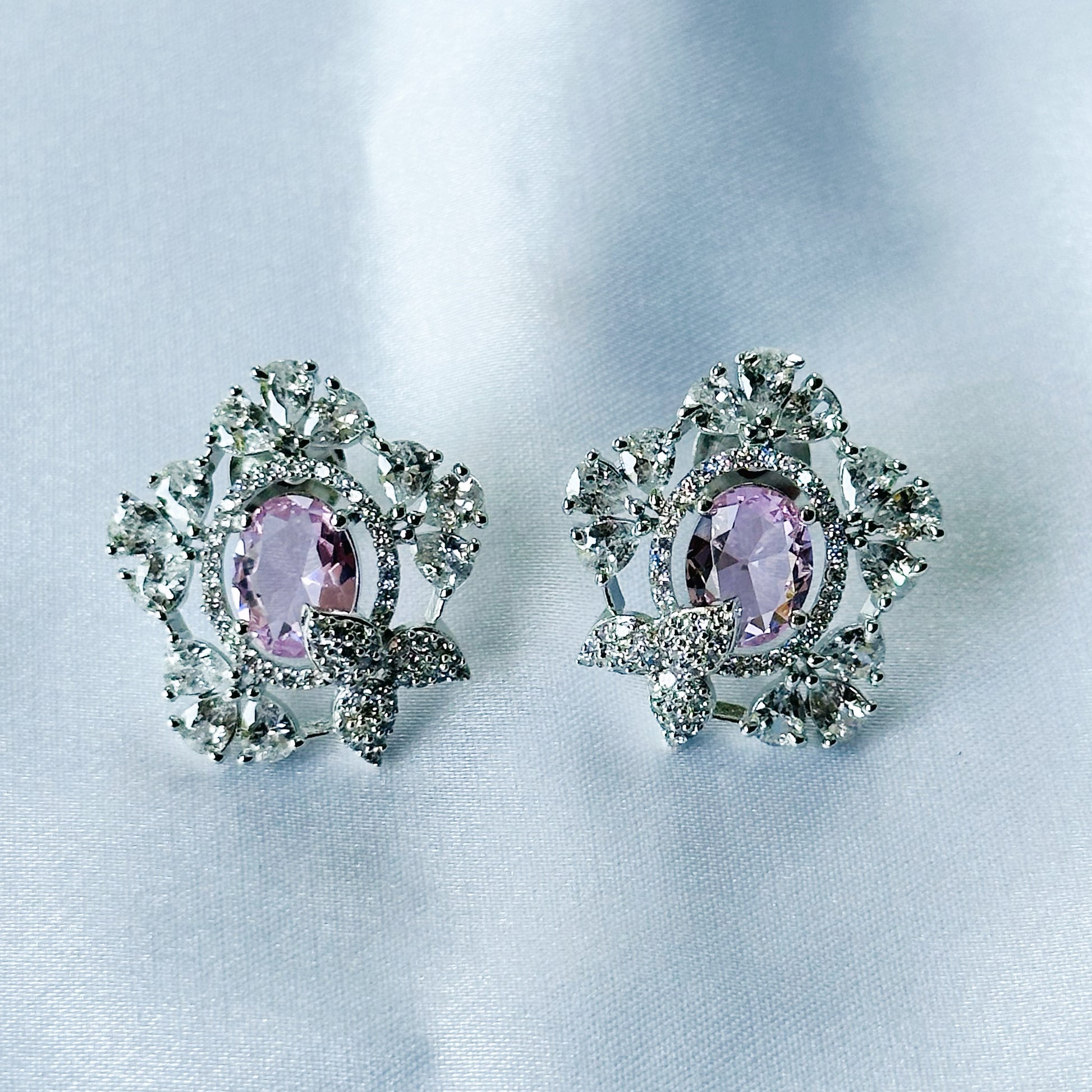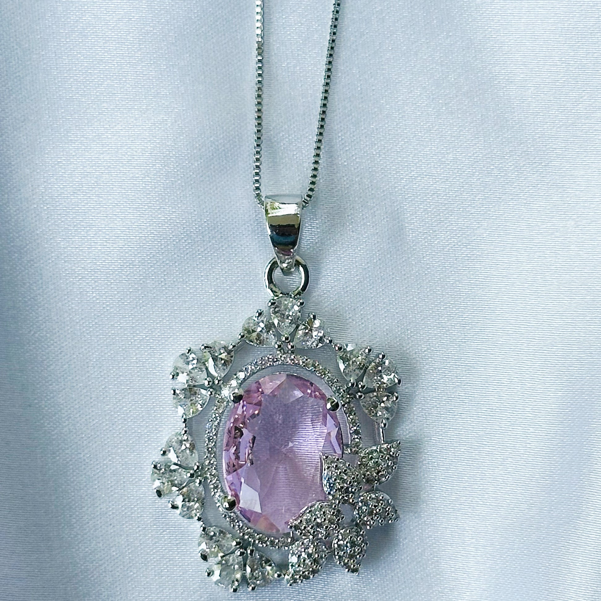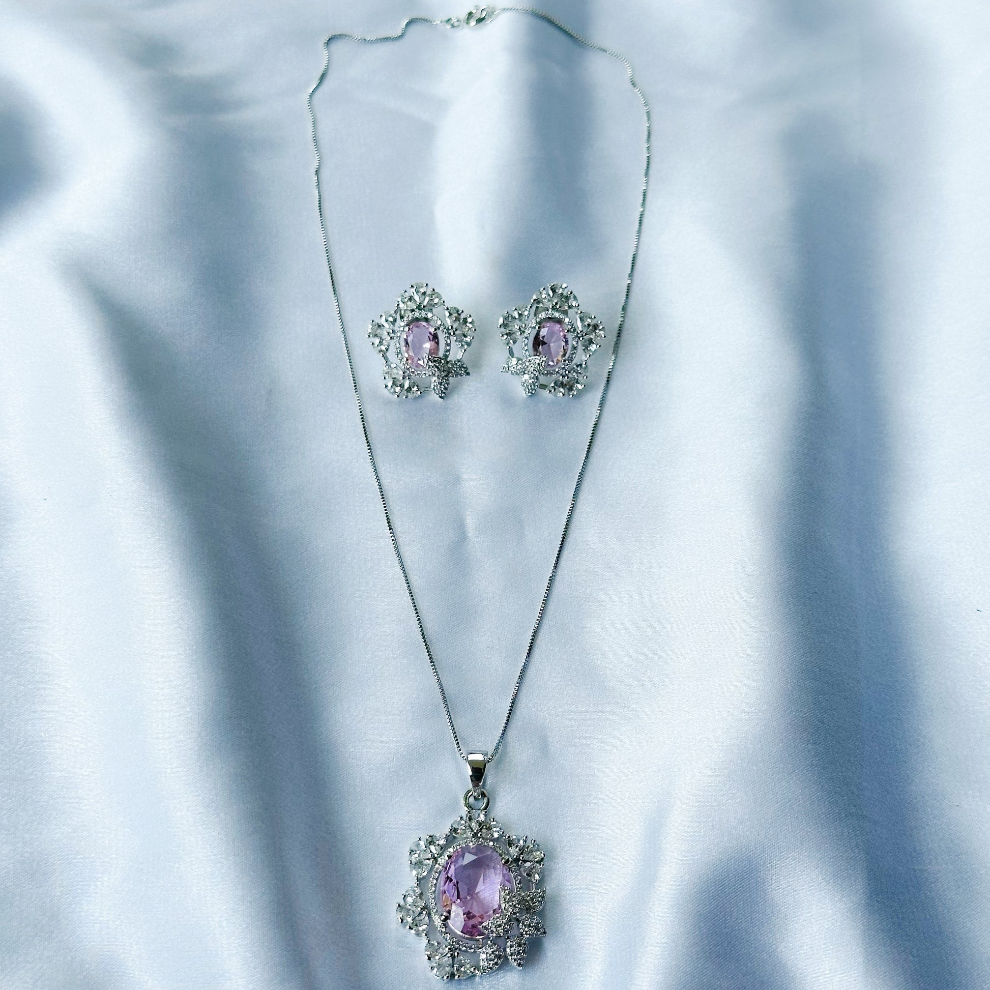 Pink Topaz Cubic Zircon American Diamond Silver Plated Pendant Set