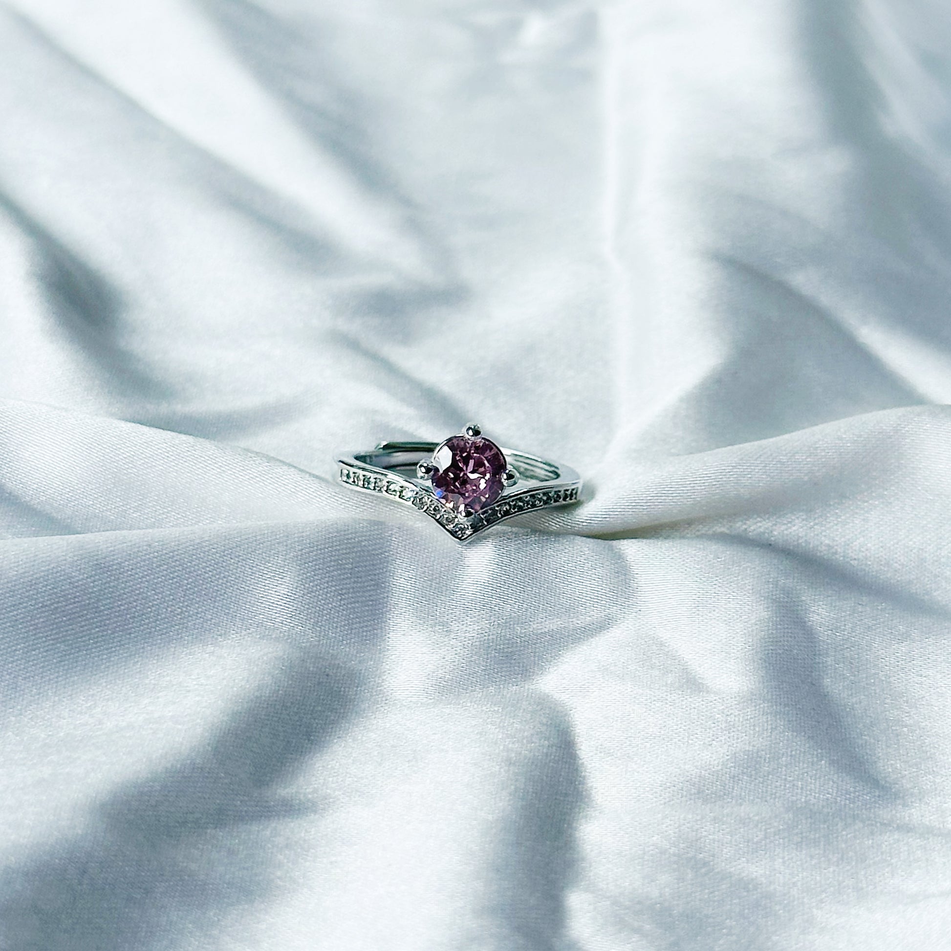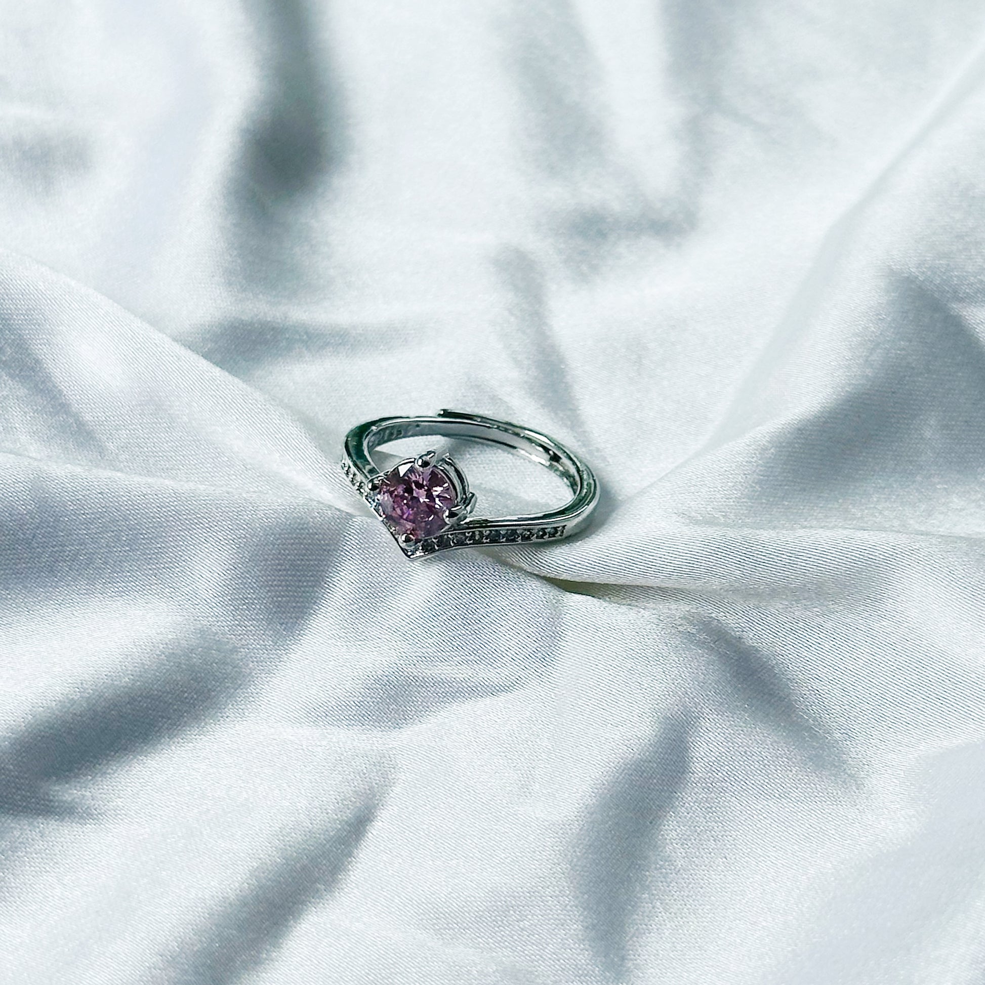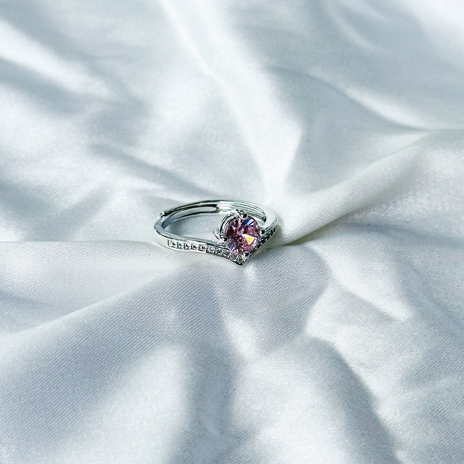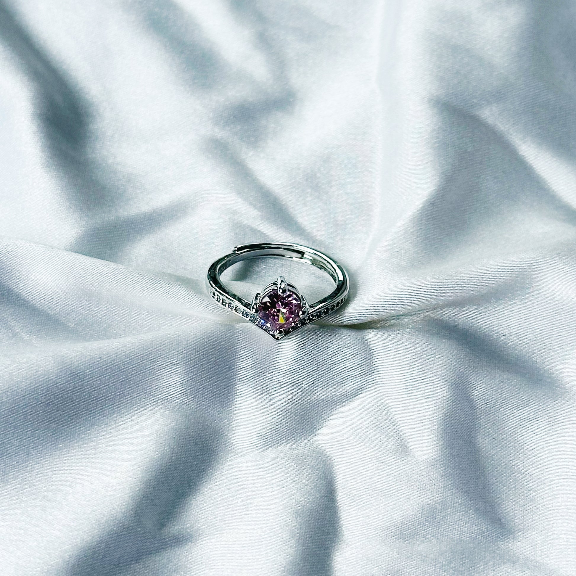 Pink Topaz Cubic Zircon American Diamond Silver Plated Adjustable Ring