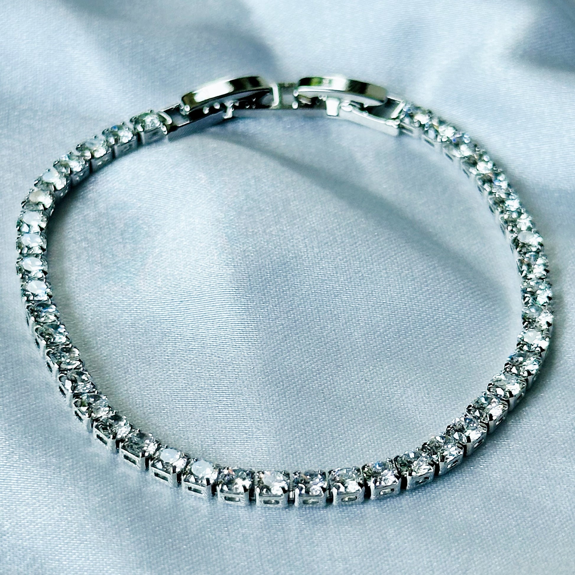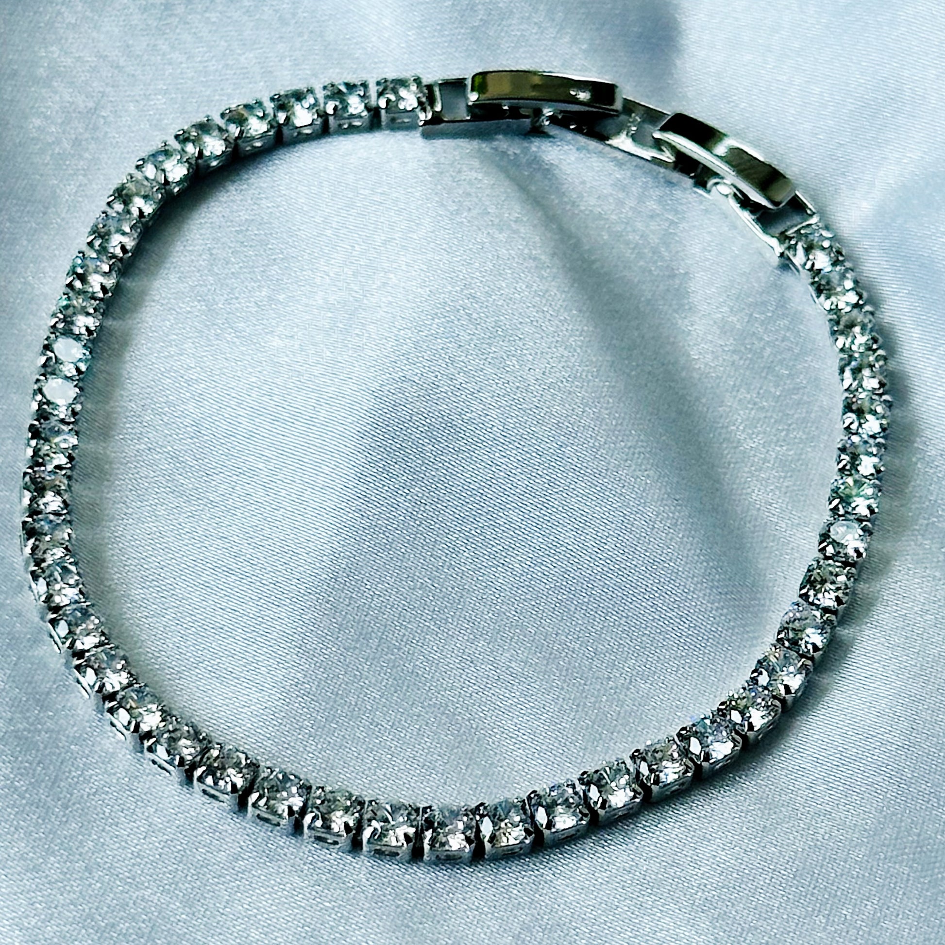 Introducing the epitome of timeless elegance, the Ariva Collection presents the exquisite Tennis Bracelet. Crafted with utmost precision, this bracelet showcases the unparalleled beauty of American Diamonds set in a stunning silver plated design. Indulge in the allure of each brilliant diamond, radiating a captivating sparkle that gracefully adorns your wrist. The sleek and refined silver plated setting adds a touch of sophistication, making this bracelet a true symbol of refined taste and style. Perfect for any occasion, the Ariva Collection Tennis Bracelet effortlessly complements your ensemble, adding a touch of understated glamour. Its classic design and impeccable craftsmanship make it a cherished piece that stands the test of time. Experience the elegance and grace of the Ariva Collection Tennis Bracelet, where every detail is a testament to the brand's commitment to excellence. Embrace the beauty of this exquisite piece and let it become a treasured part of your jewellery collection.
