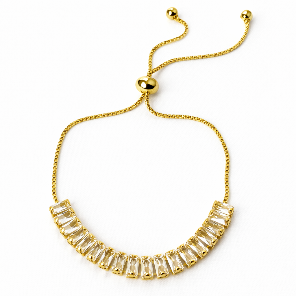 Solitaire Cubic Zirconia American Diamond Gold Plated Adjustable Bracelet