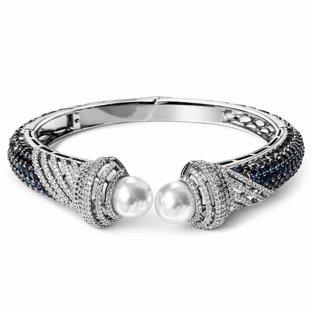 Blue Sapphire Cubic Zirconia American Diamond Victorian Plated Bangle Bracelet