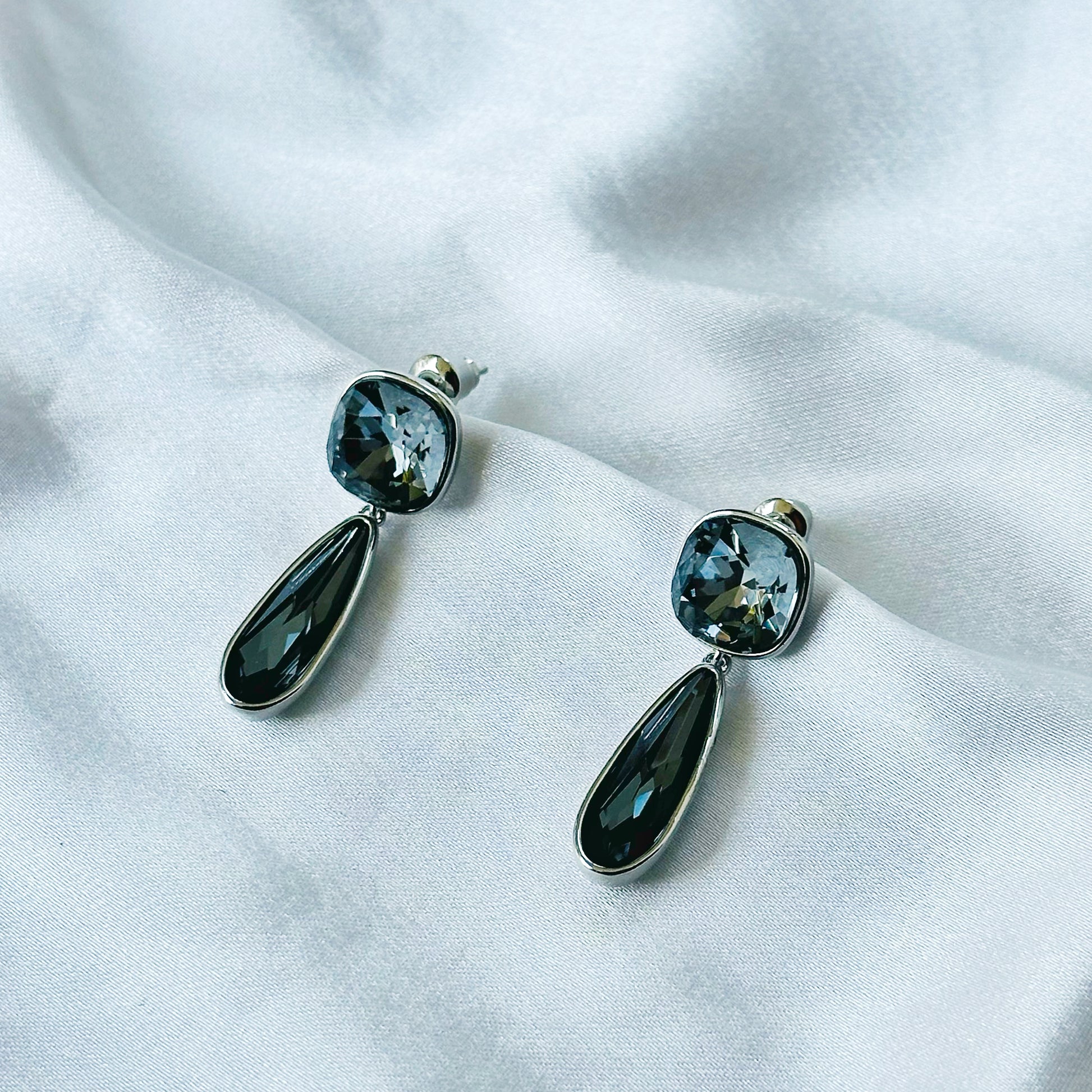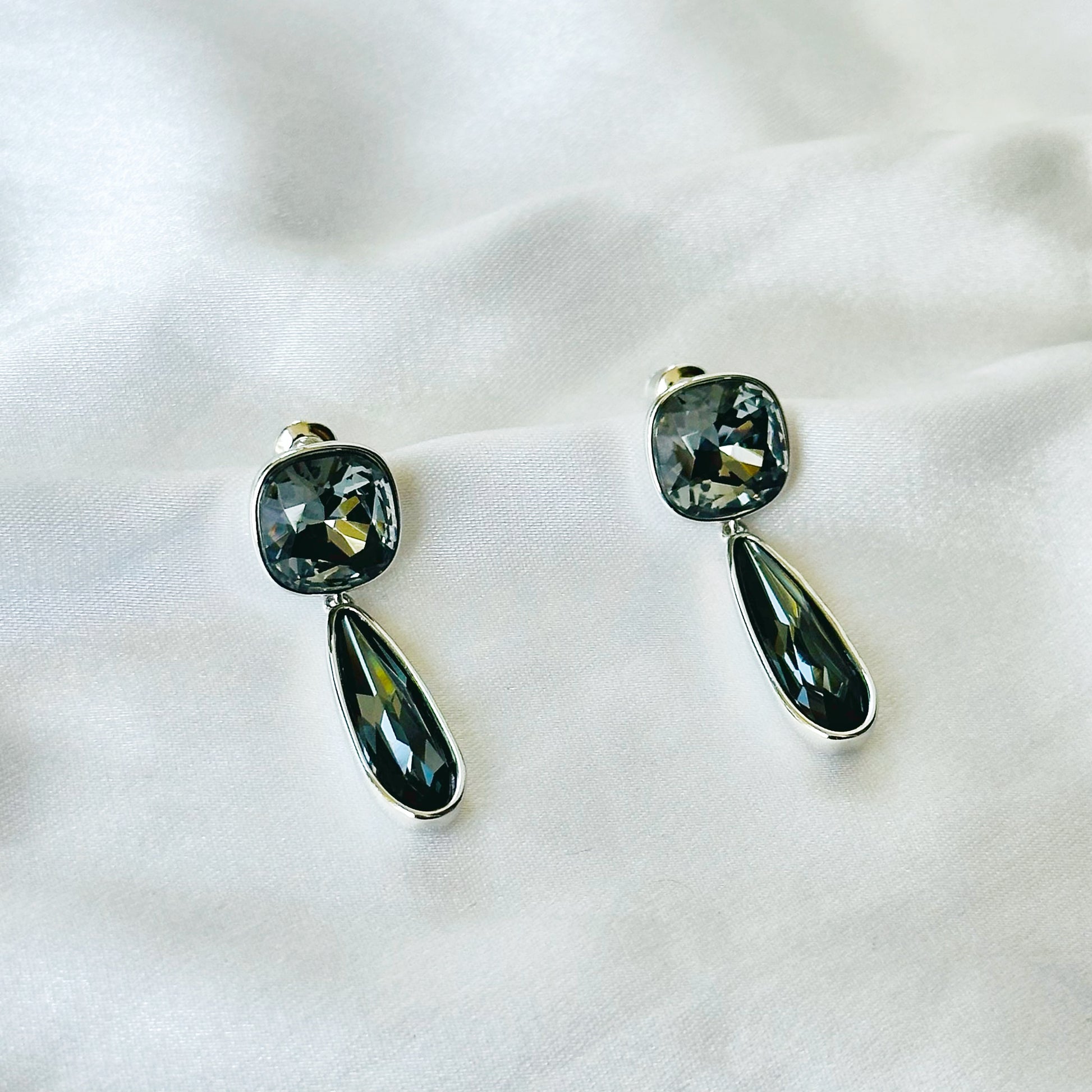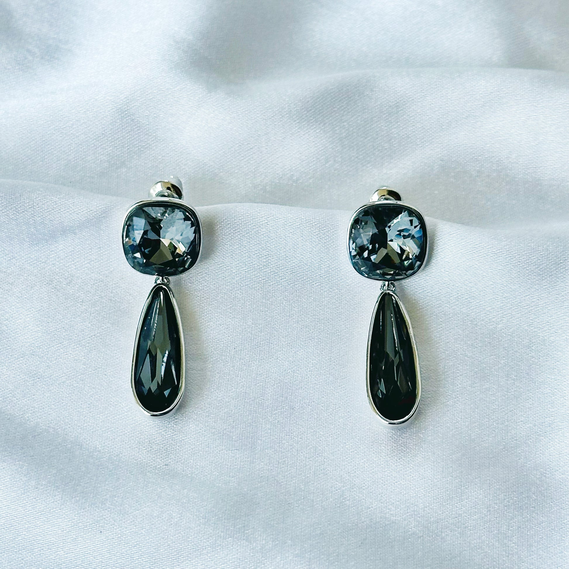 Black Morion Swarovski Crystal Silver Plated Earrings