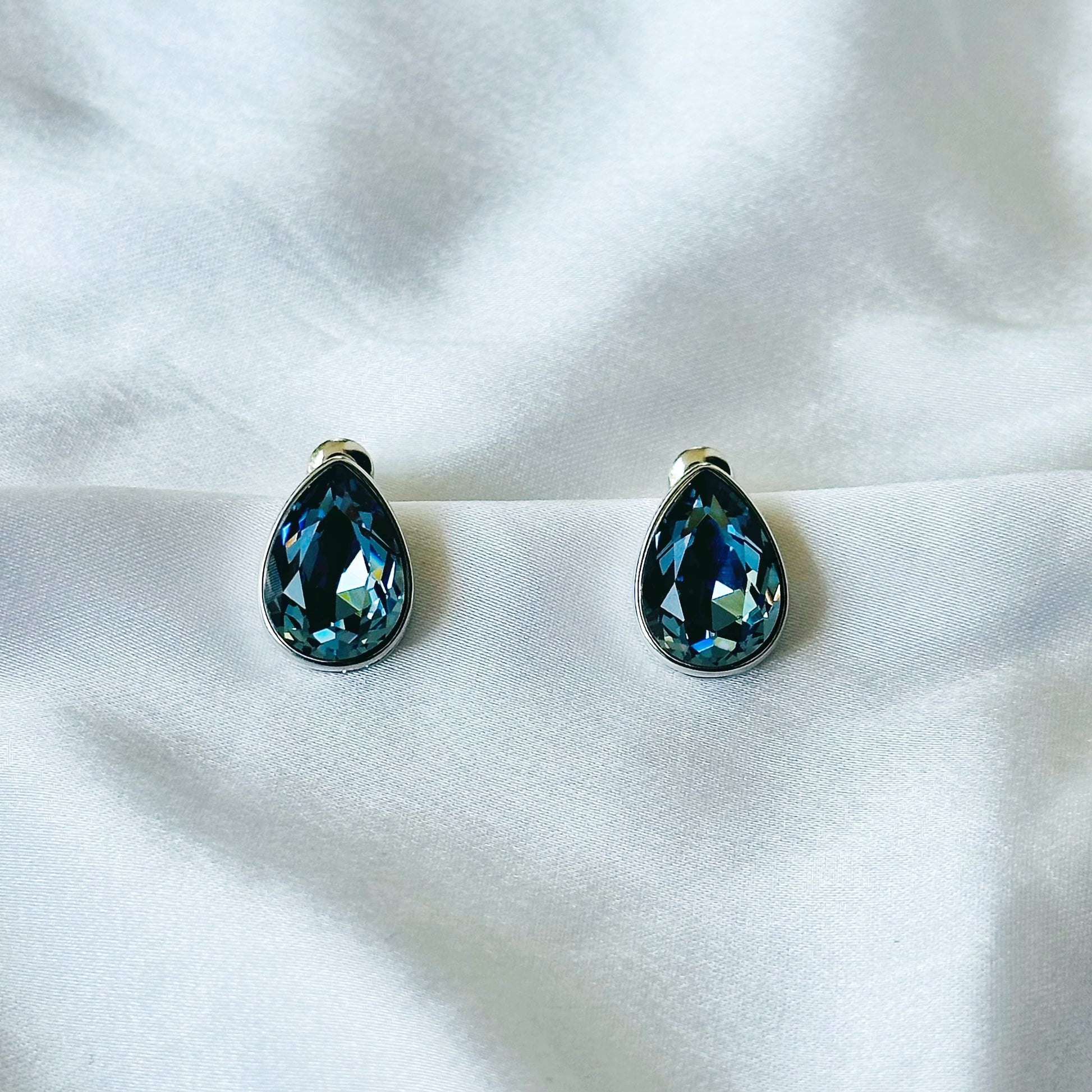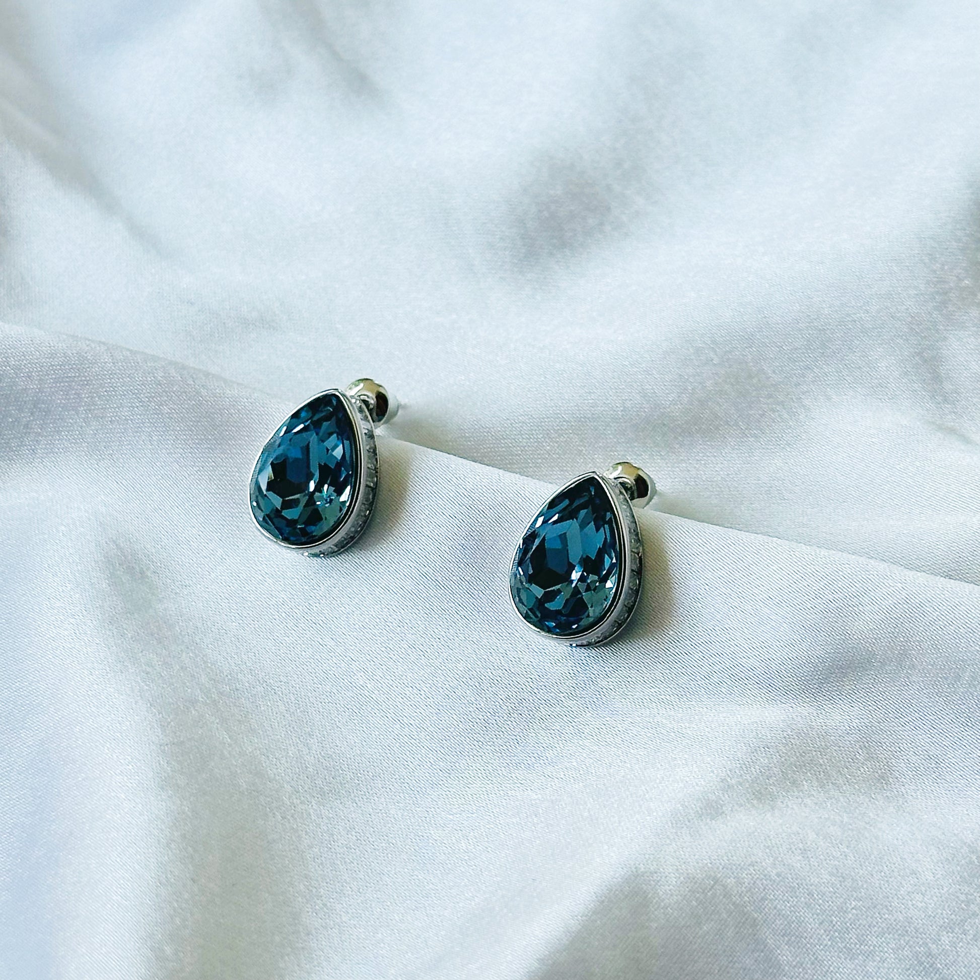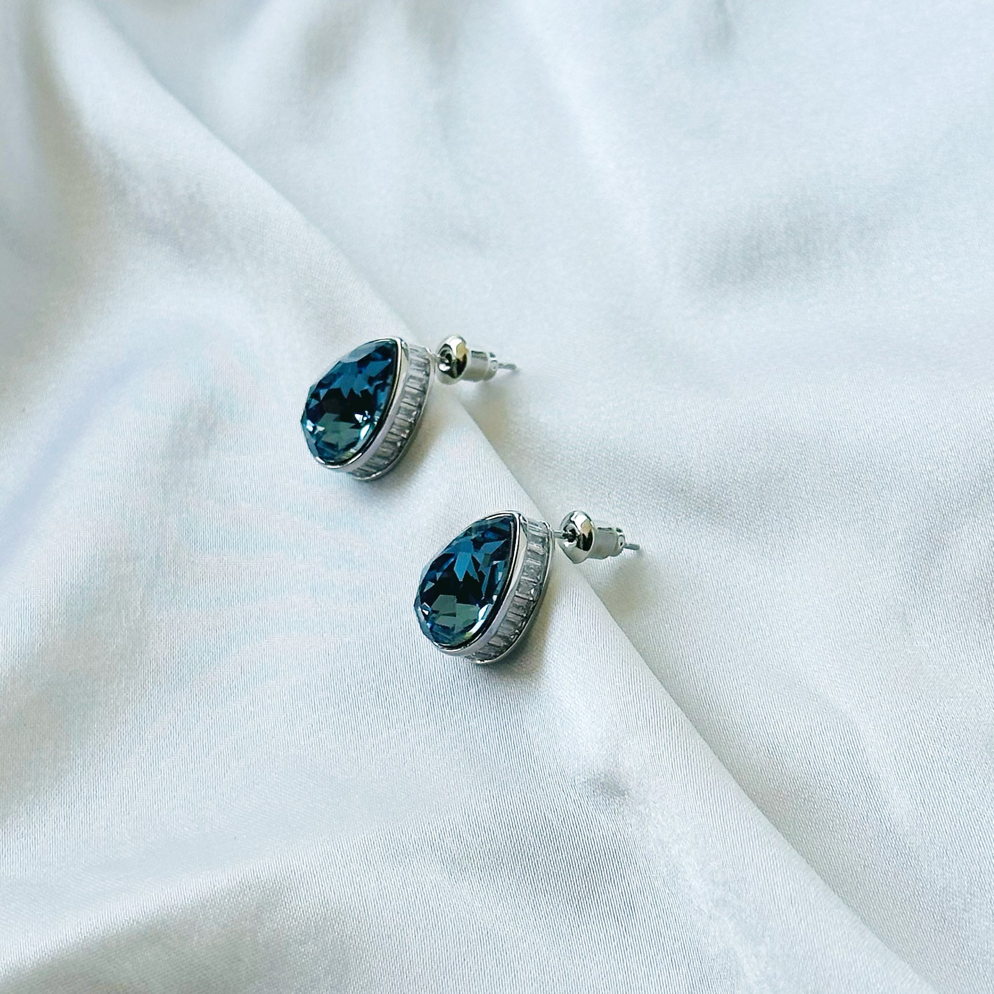Dark Indigo Blue Swarovski Crystal Silver Plated Stud Earrings