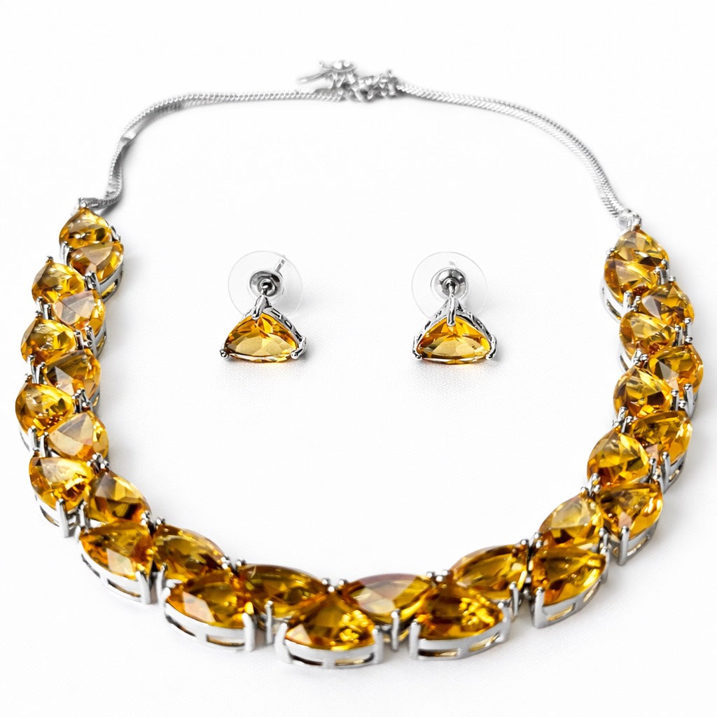 Smoked Topaz Cubic Zirconia American Diamond Silver Plated Necklace Set