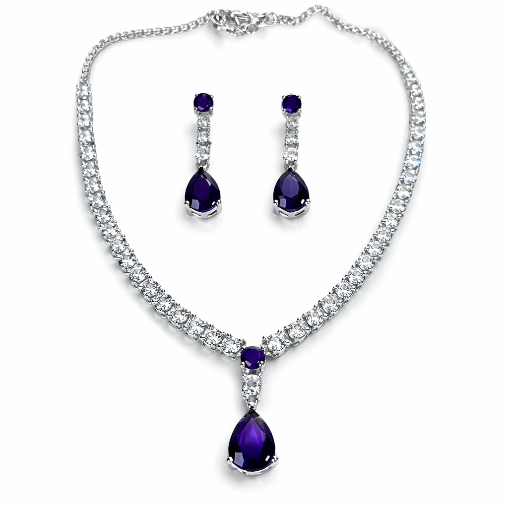 Purple Amethyst Cubic Zirconia American Diamond Silver Plated Necklace Set
