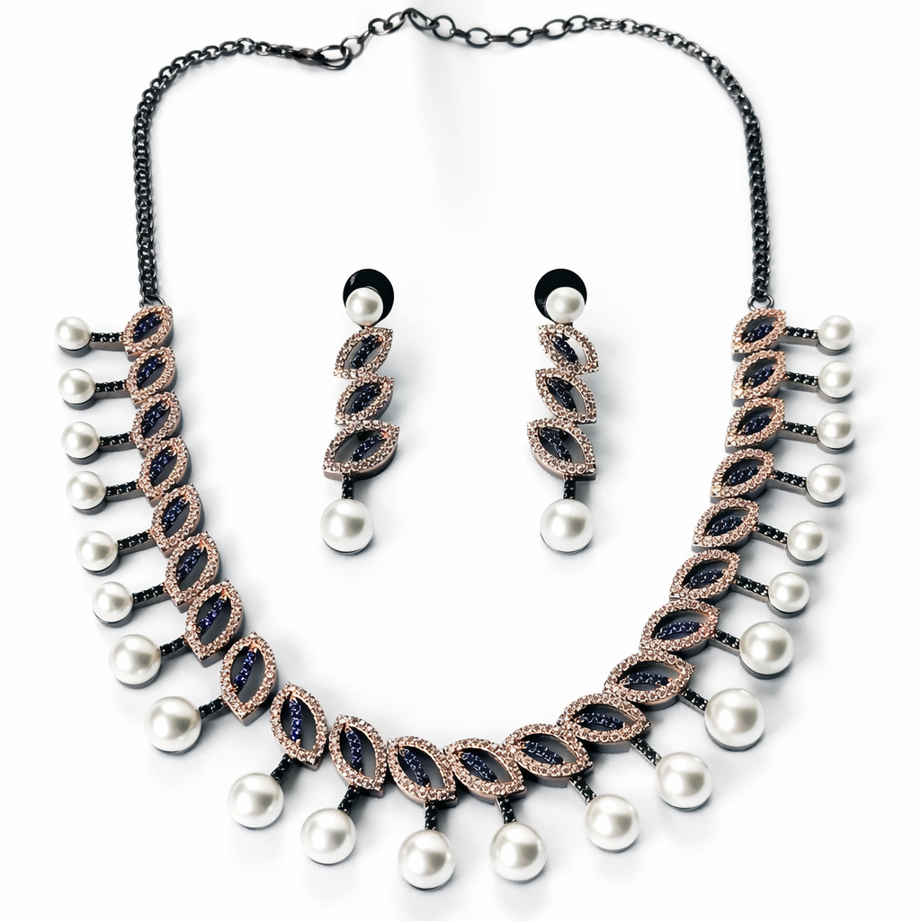 Purple Amethyst Cubic Zirconia American Diamond Victorian Plated Necklace Set
