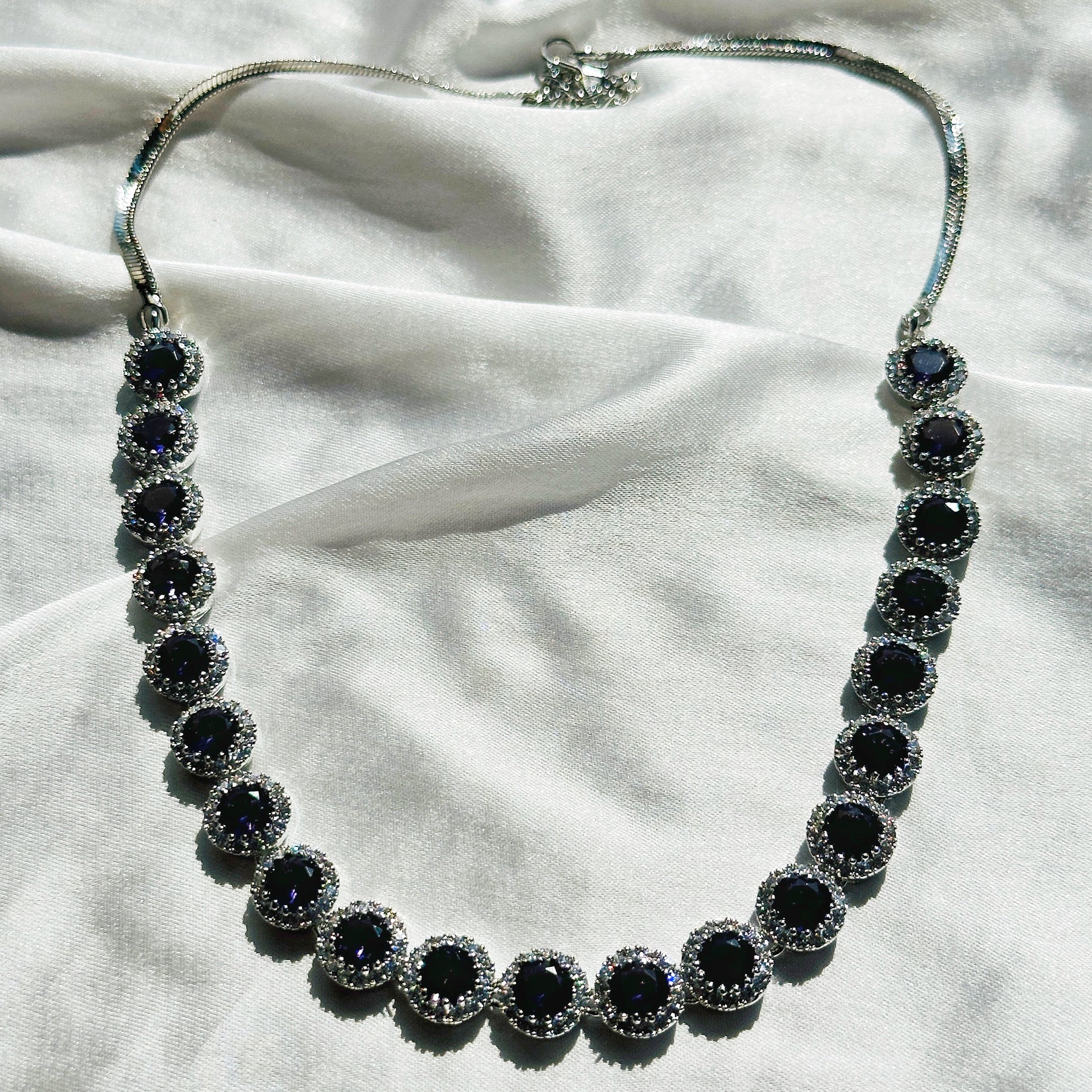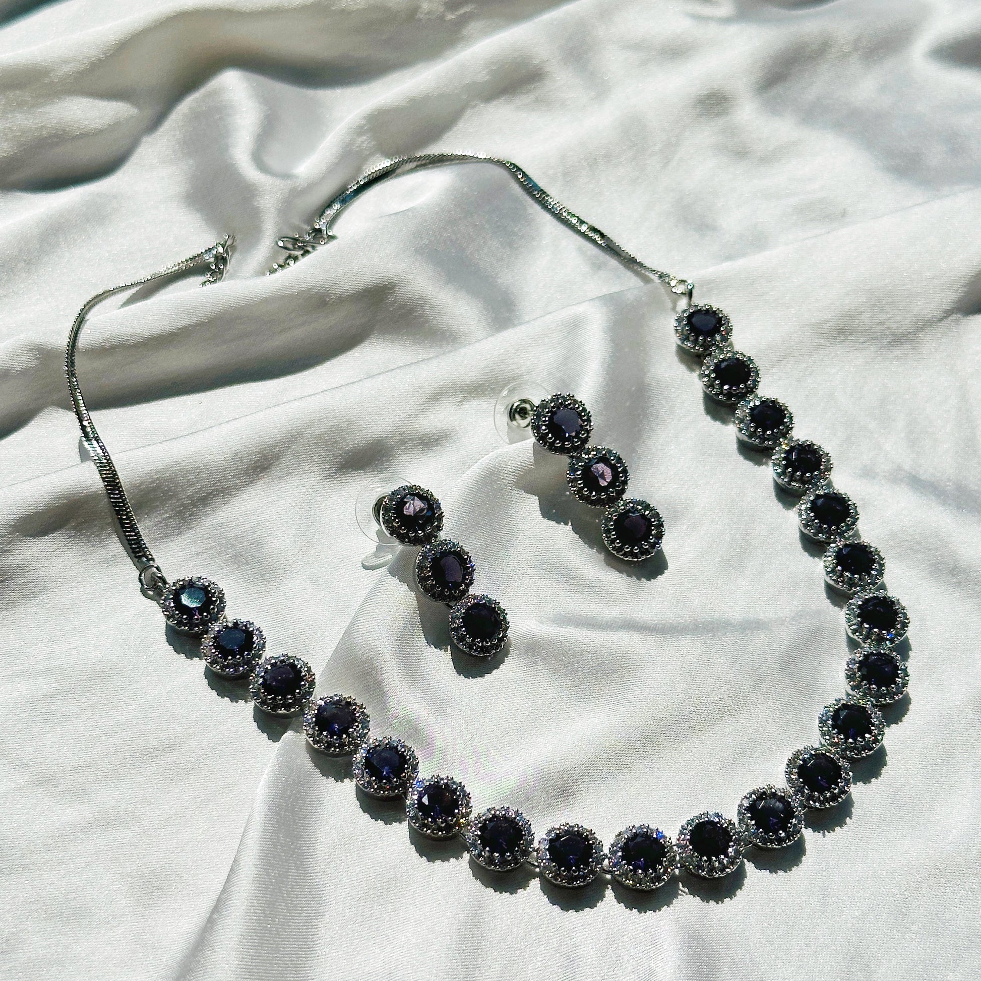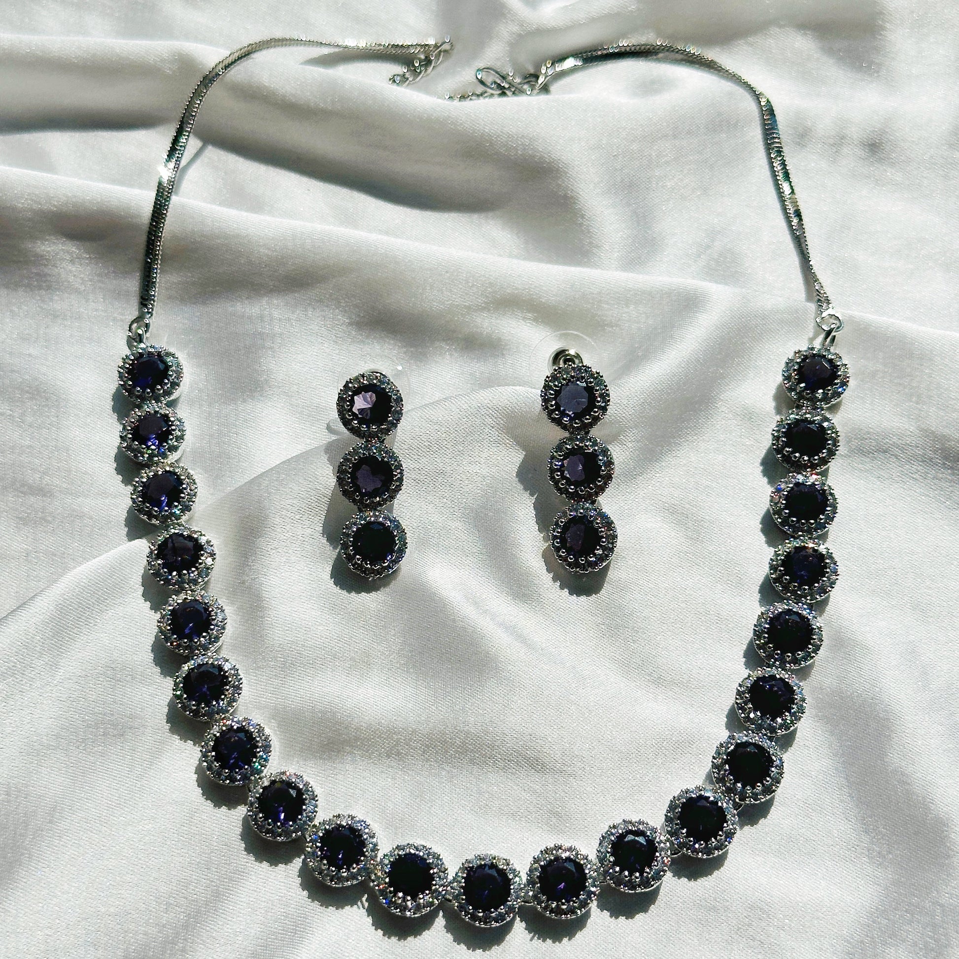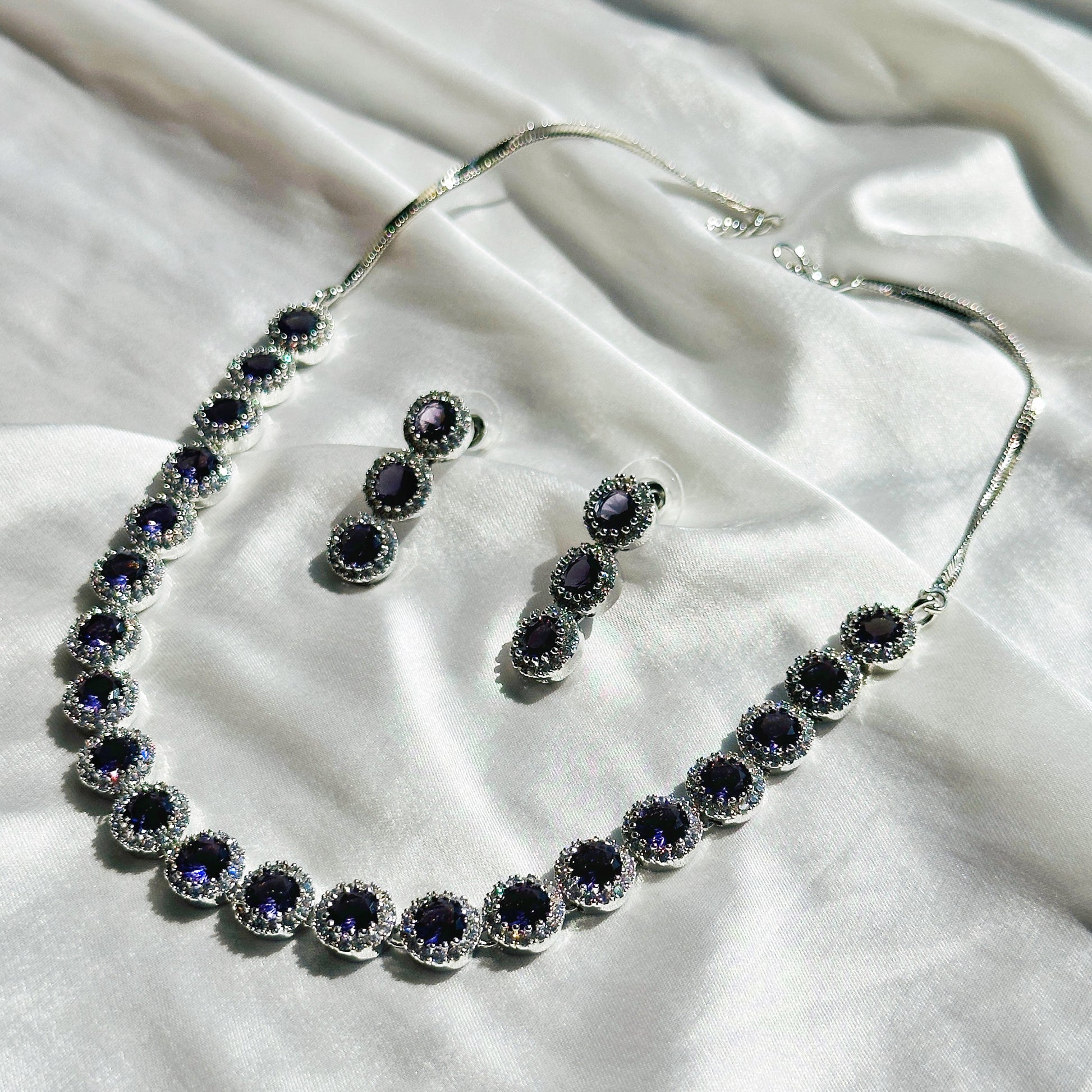 Deep Purple Amethyst Cubic Zircon Stone American Diamond Silver Plated Necklace Set
