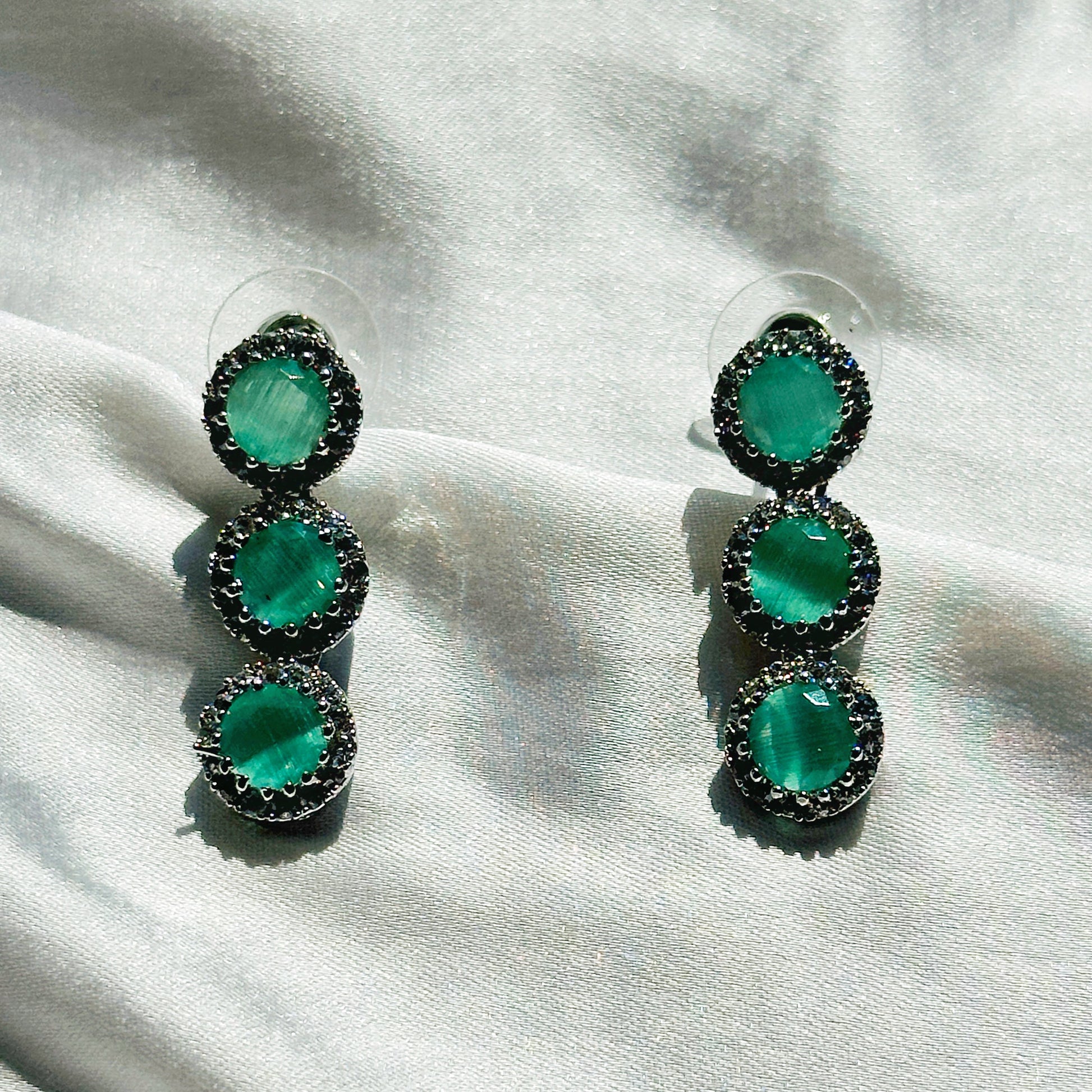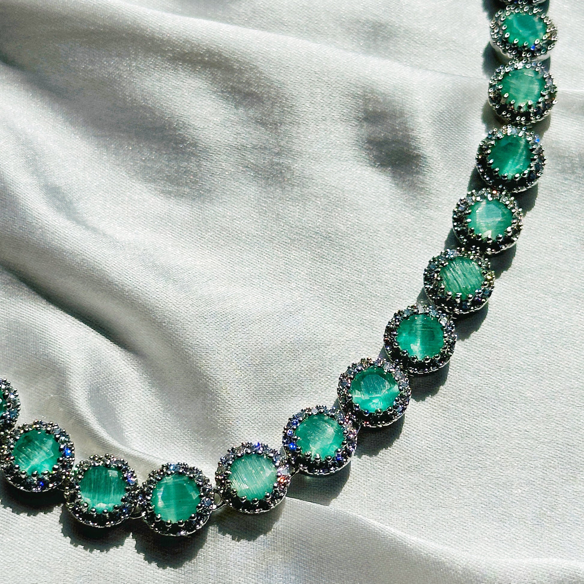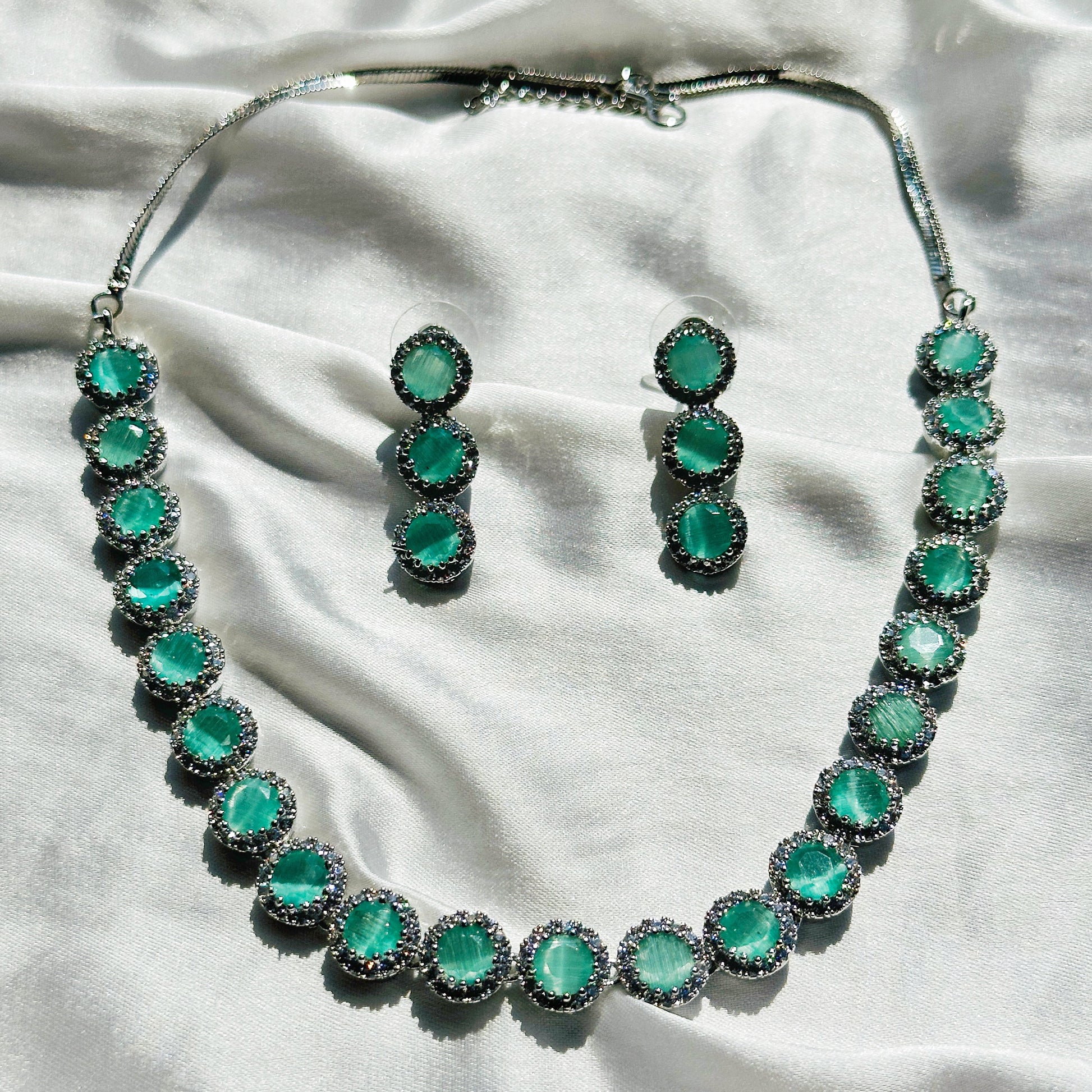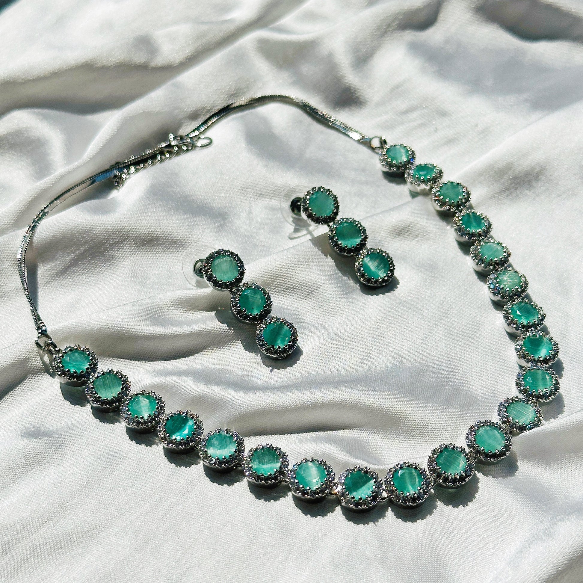Mint Green Topaz Cubic Zircon Stone American Diamond Silver Plated Necklace Set