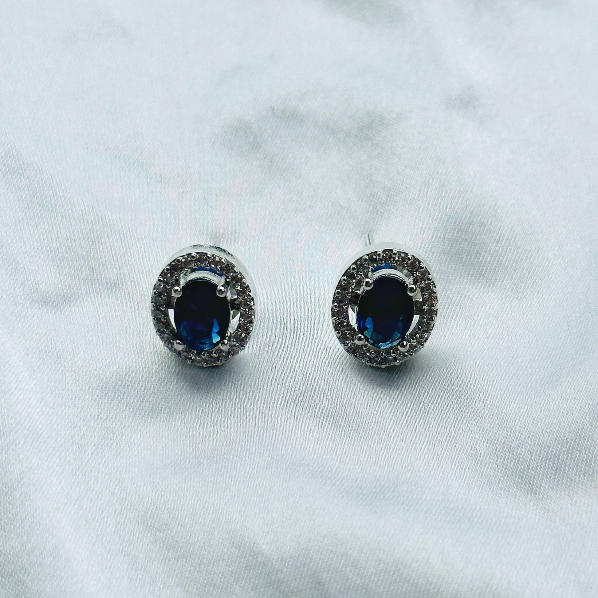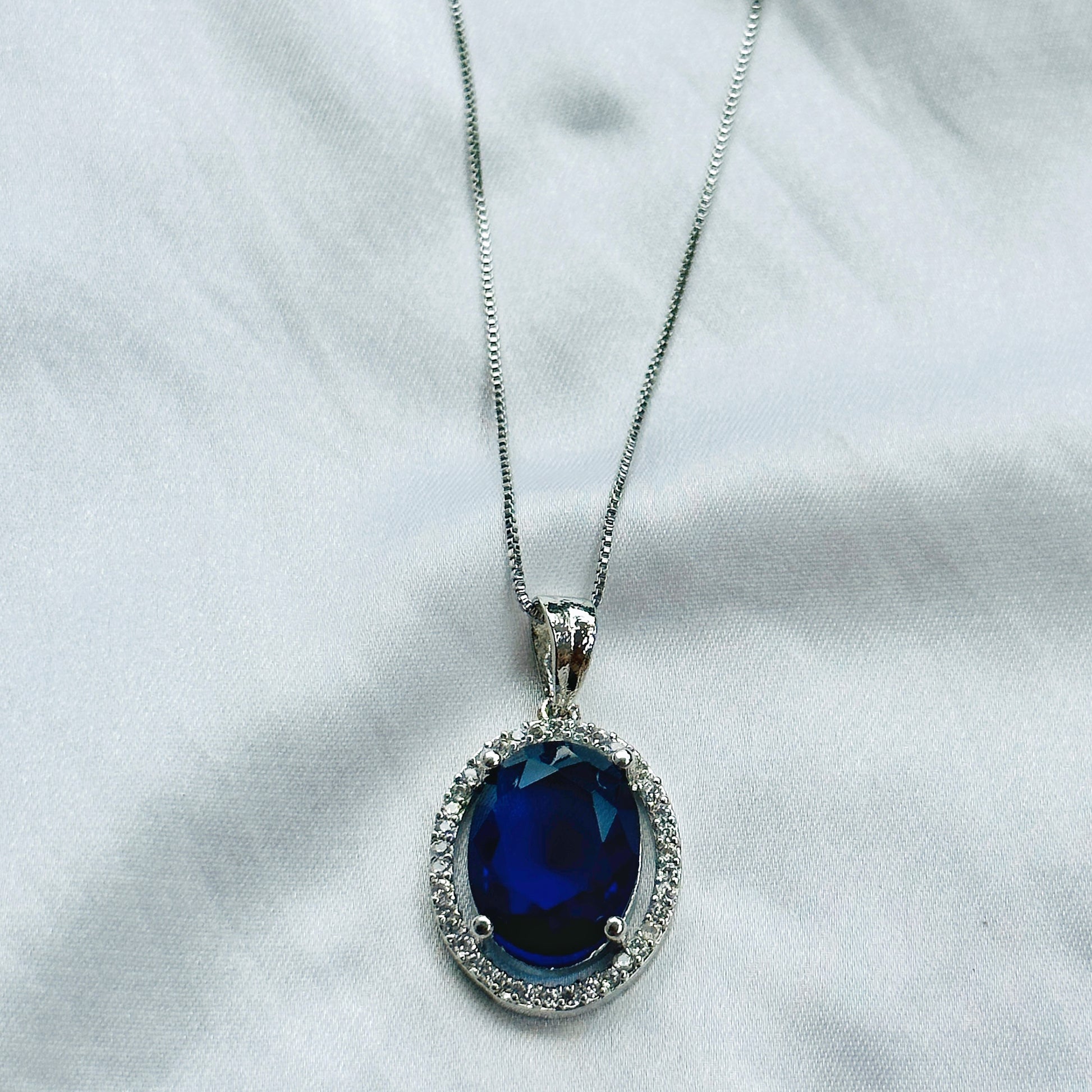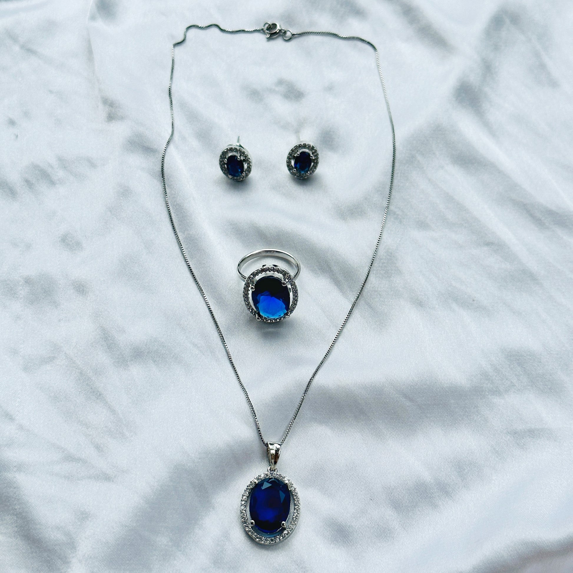 Blue Sapphire Cubic Zircon American Diamond Silver Plated Pendant Set Combo