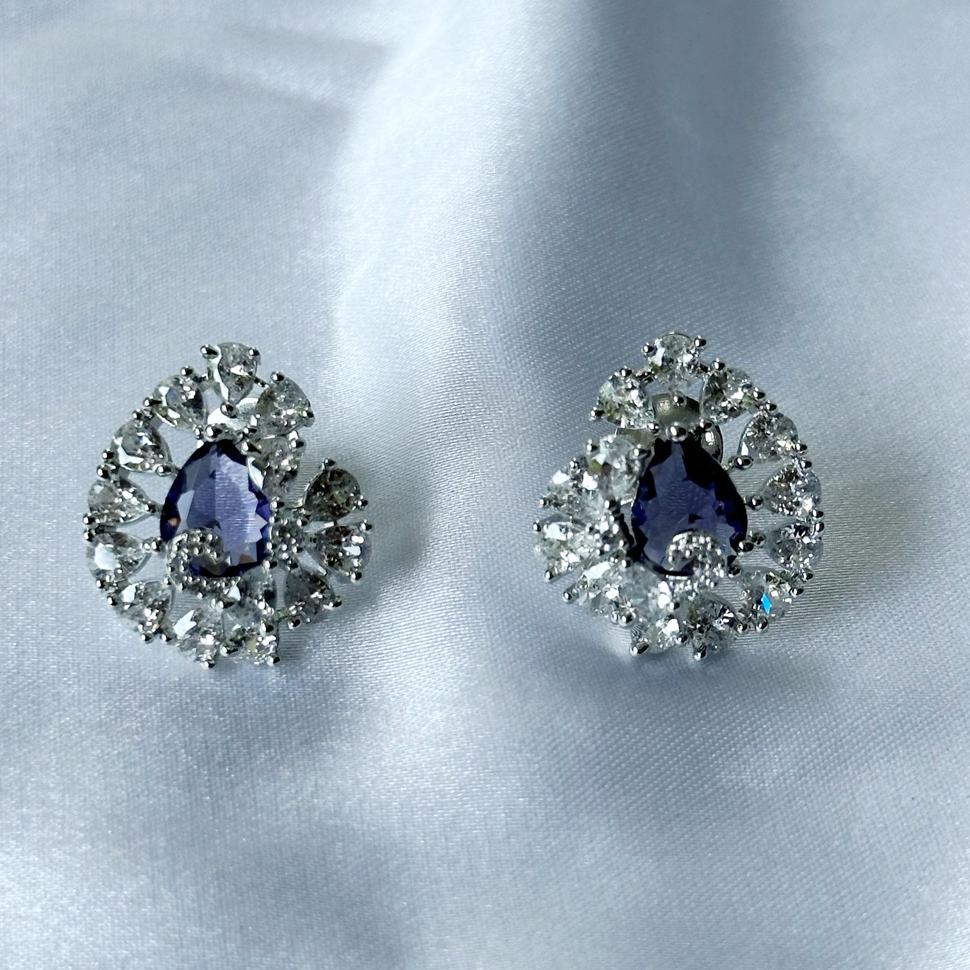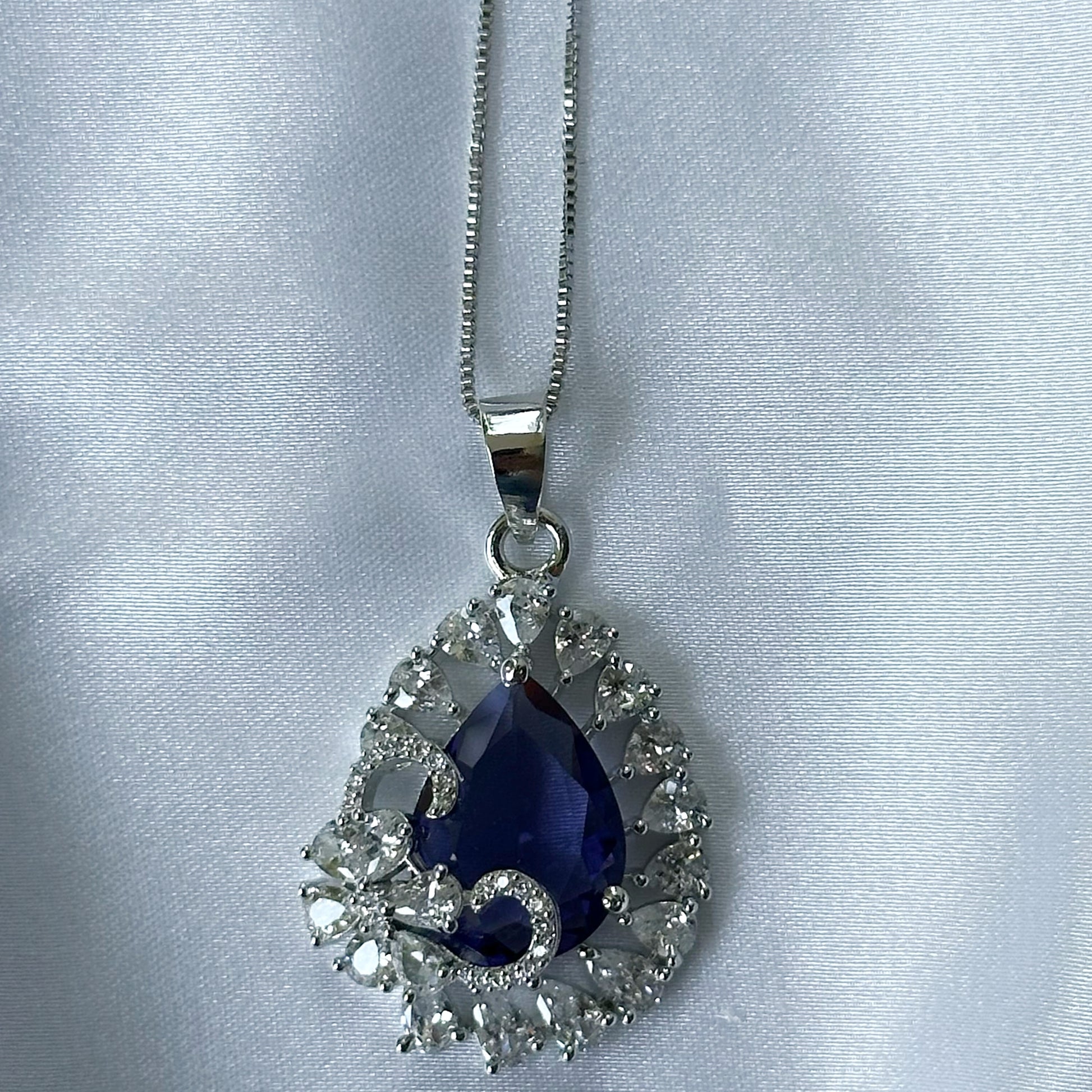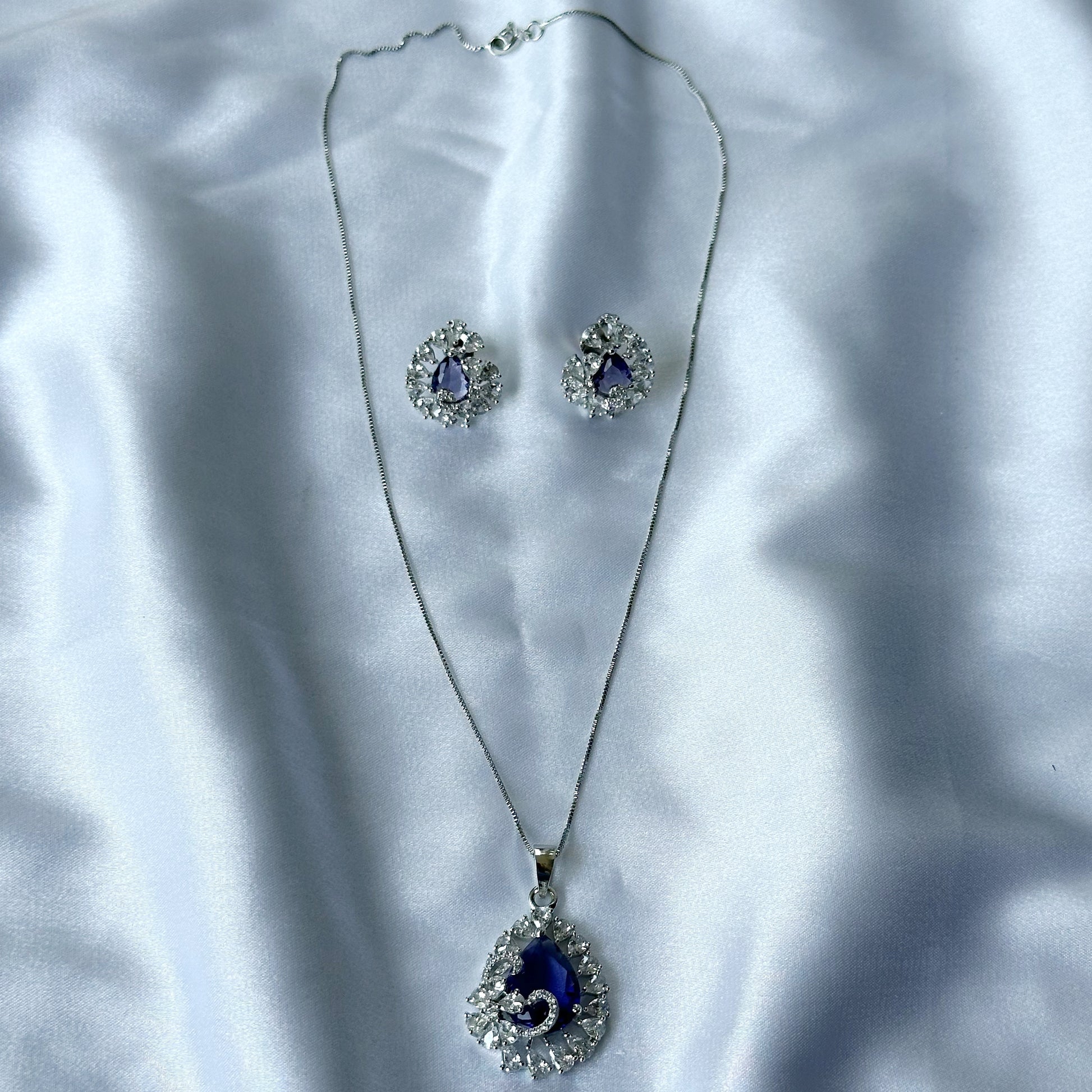 Deep Purple Amethyst Cubic Zircon American Diamond Silver Plated Pendant Set