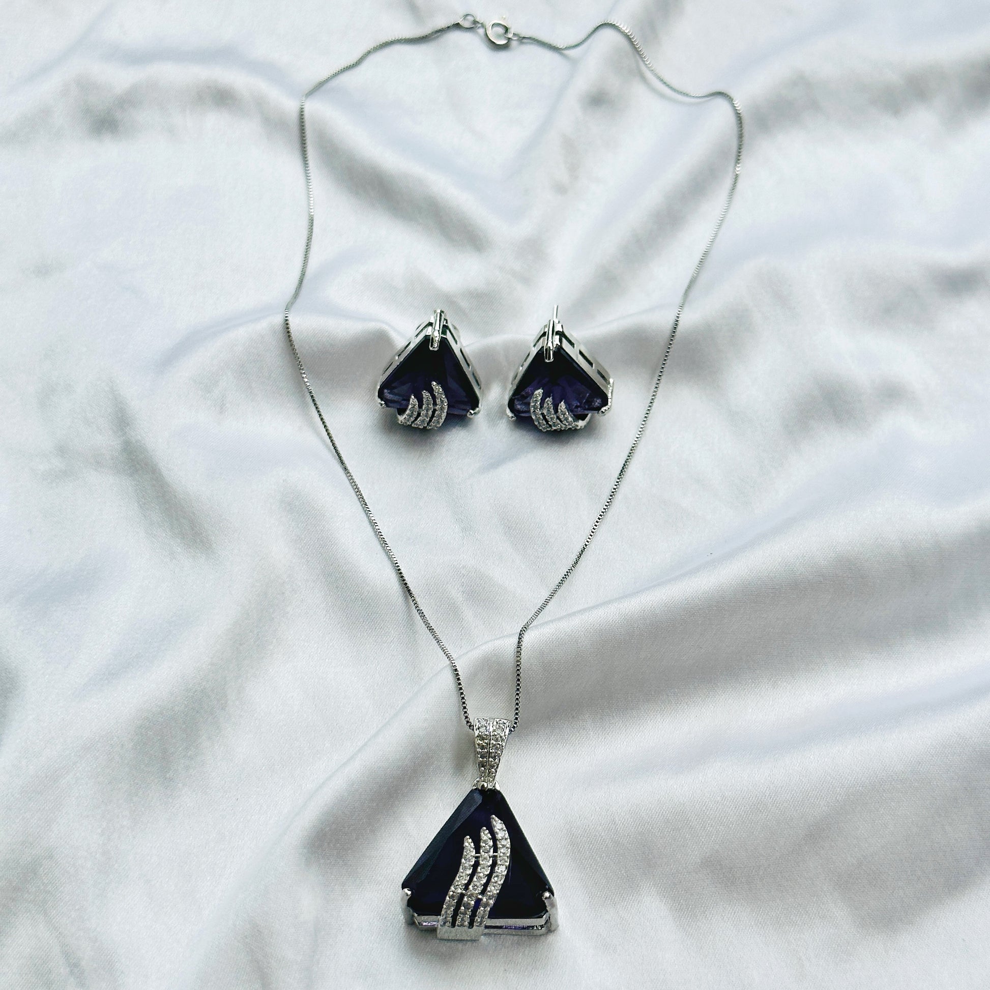 Diamond, Silver Plated Pendant Set. This exquisite jewellery set is a masterpiece of elegance and style, featuring a stunning combination of deep purple cubic zircon stones and sparkling American diamonds set in a lustrous silver plating. With its unique design and impeccable craftsmanship, this pendant set is a true statement piece that will add a touch of sophistication to any outfit. The deep purple cubic zircon stones exude a rich and luxurious look, while the American diamonds add a brilliant and dazzling sparkle. The pendant effortlessly hangs from a sleek silver chain, enhancing the beauty of your neckline. Whether it's a formal event or a casual gathering, the Ariva Collection Deep Purple Cubic Zircon, American Diamond, Silver Plated Pendant Set is the perfect accessory to elevate our style and make a lasting impression. Embrace the timeless elegance of this pendant set and add a touch of glamour to your jewellery collection.