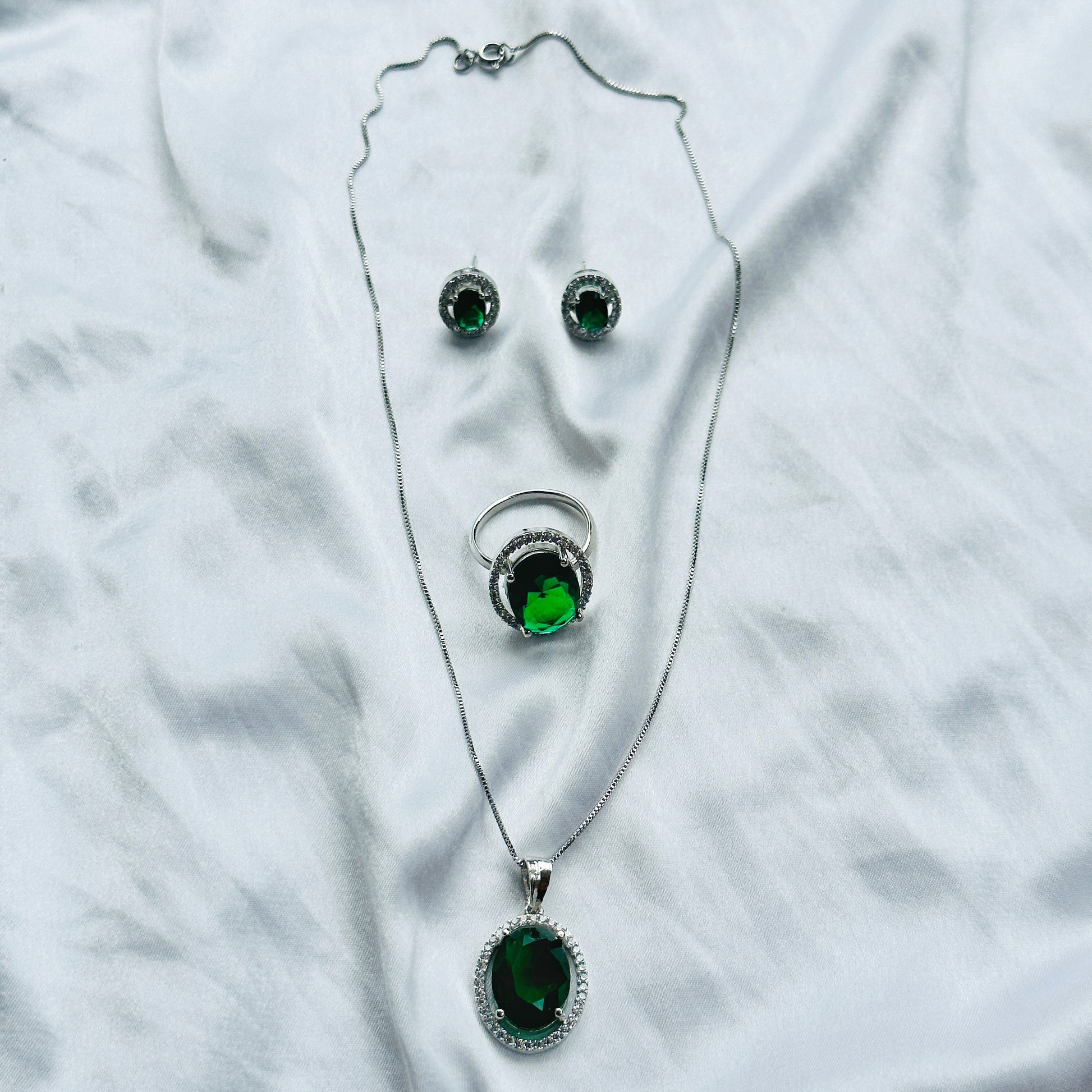 Green Emerald Cubic Zircon Silver AD Pendant Set Combo