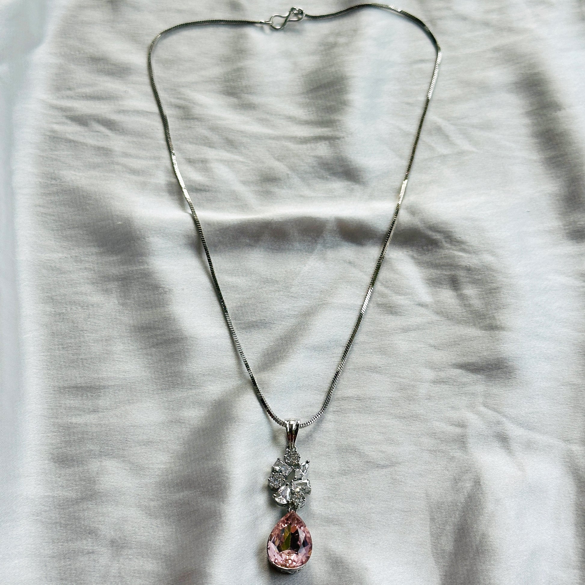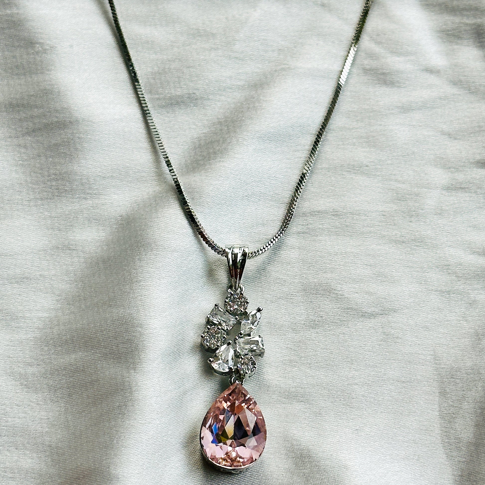 Light Pink Rose Swarovski Crystal American Diamond Silver Plated Pendant Set