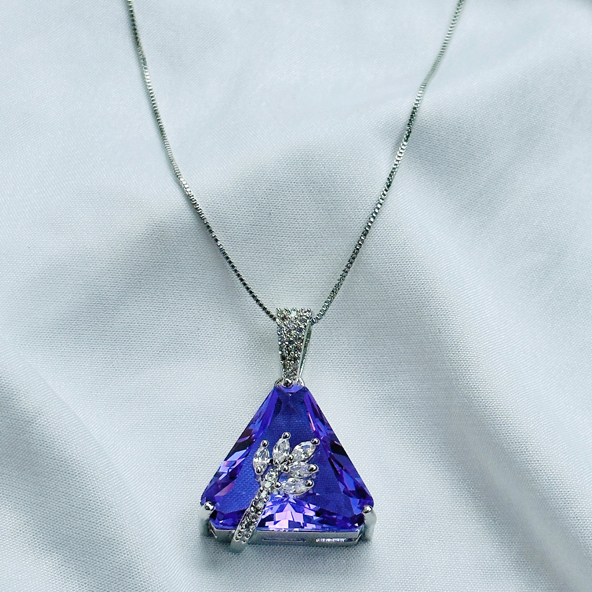 Lilac-Purple Cubic Zircon American Diamond Silver Plated Pendant Set