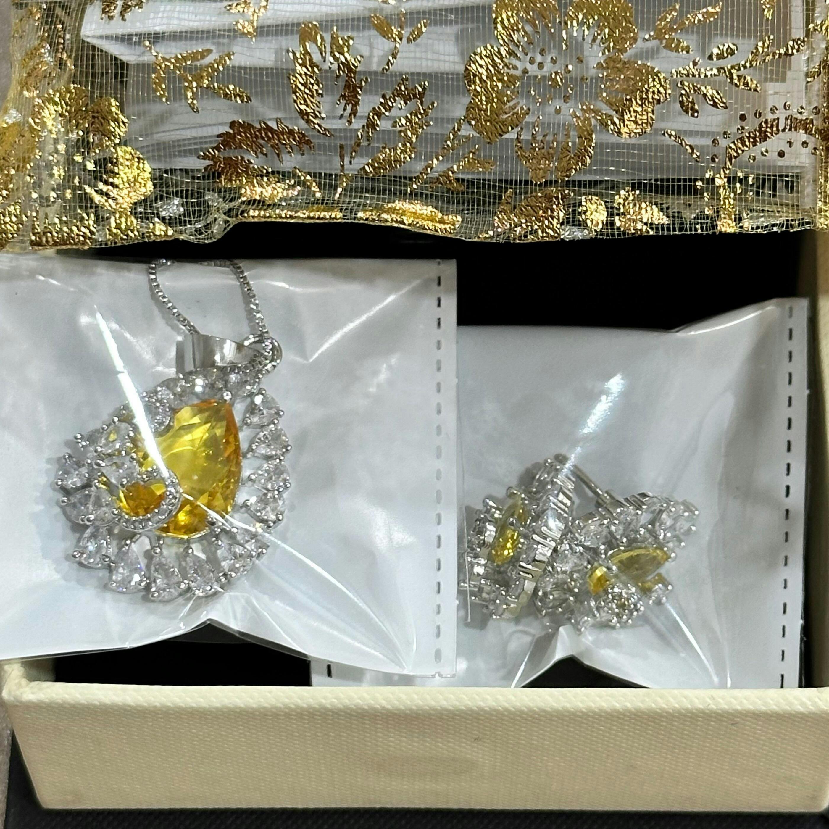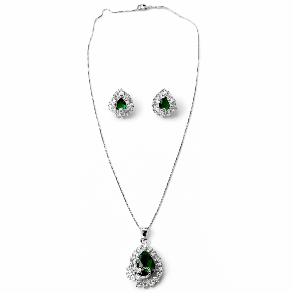 Green Emerald Cubic Zirconia American Diamond Silver Plated Pendant Set