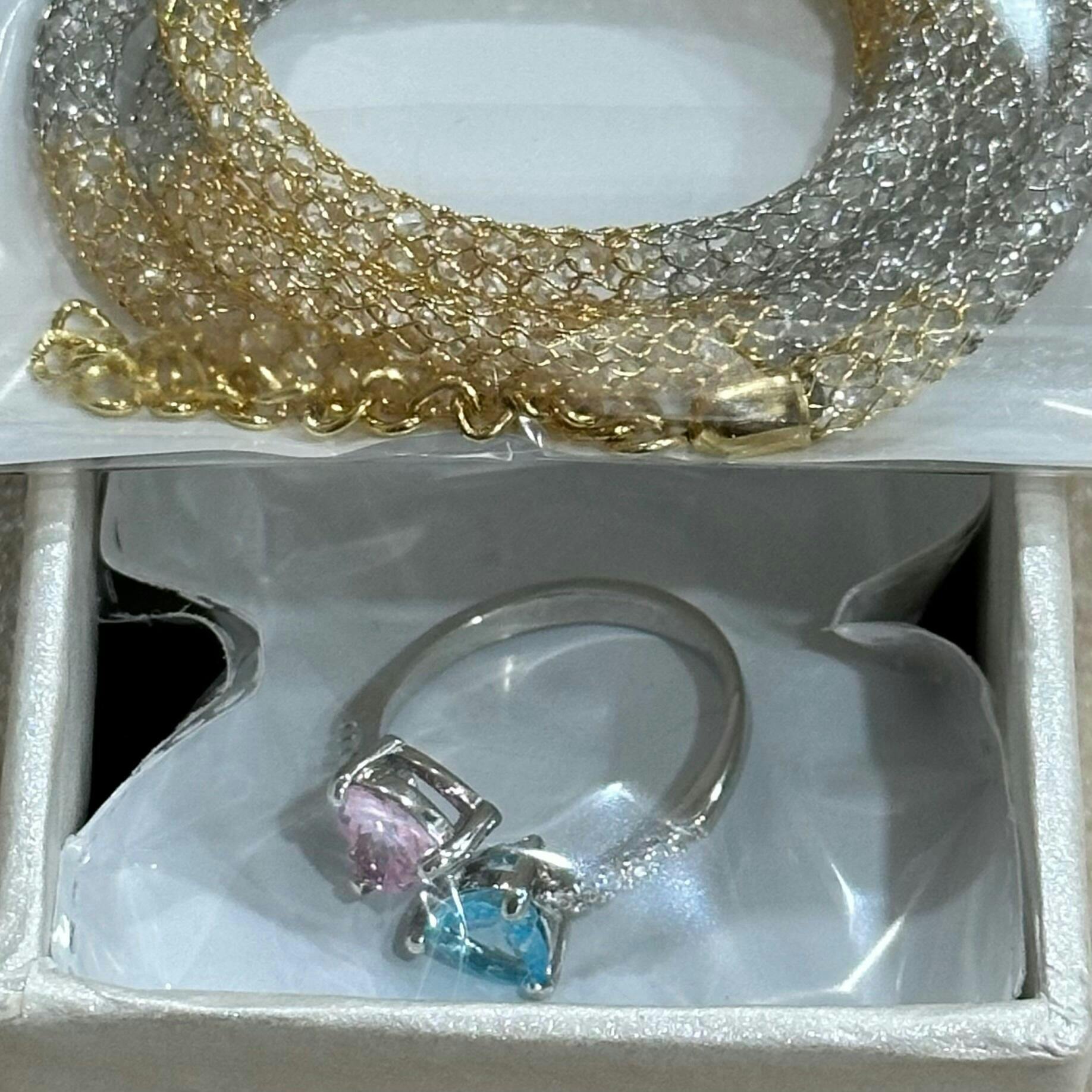 Aqua Blue Sapphire & Pink Topaz Cubic Zirconia Ice Cut American Diamond Silver Plated Adjustable Ring