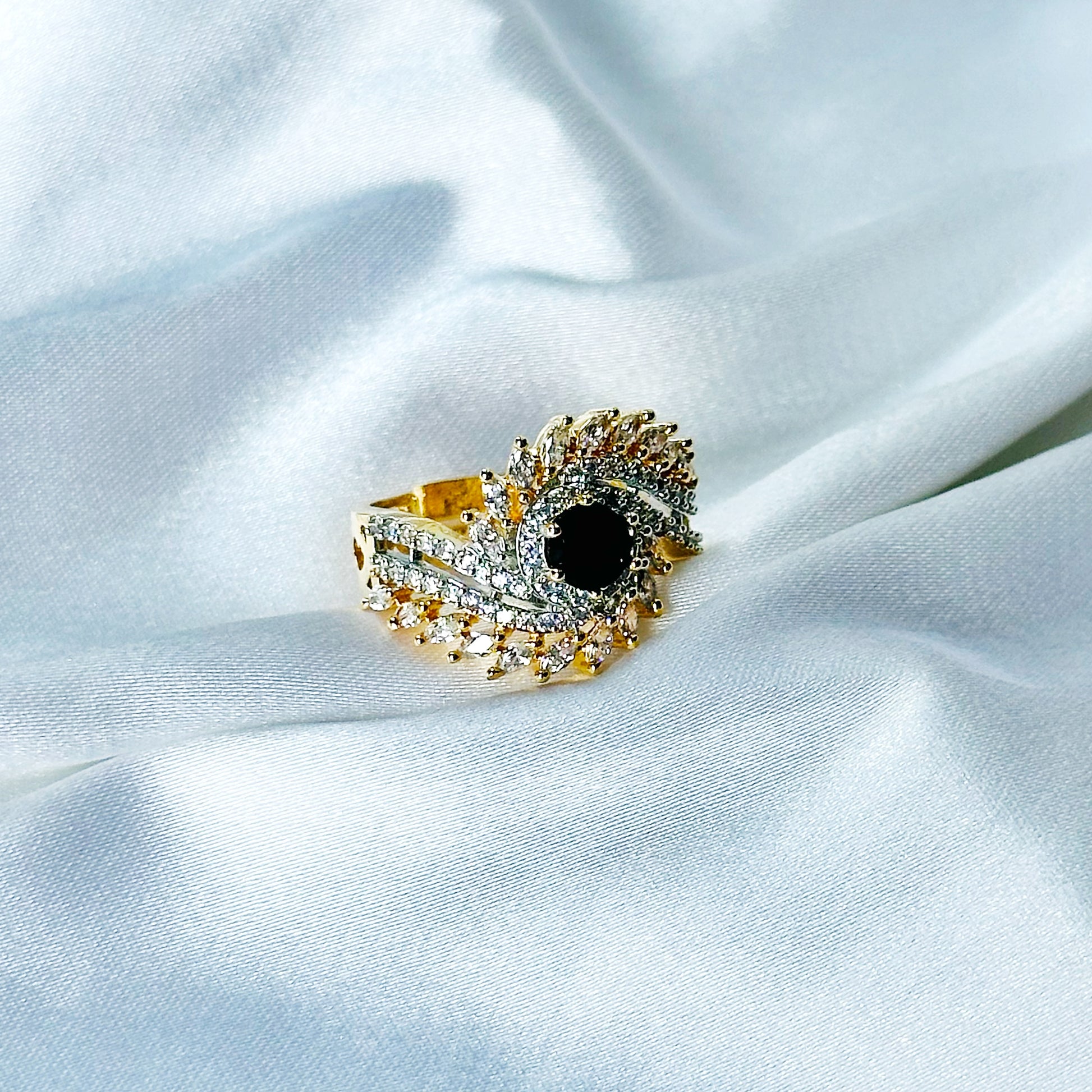 Black Cubic Zircon American Diamond Gold/Silver Plated Adjustable Ring