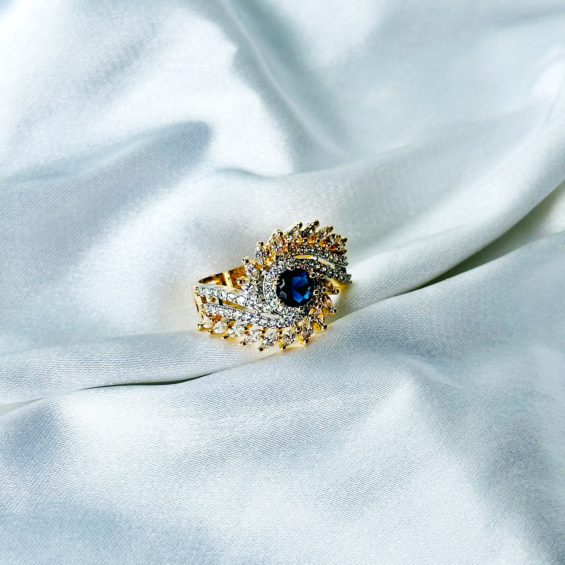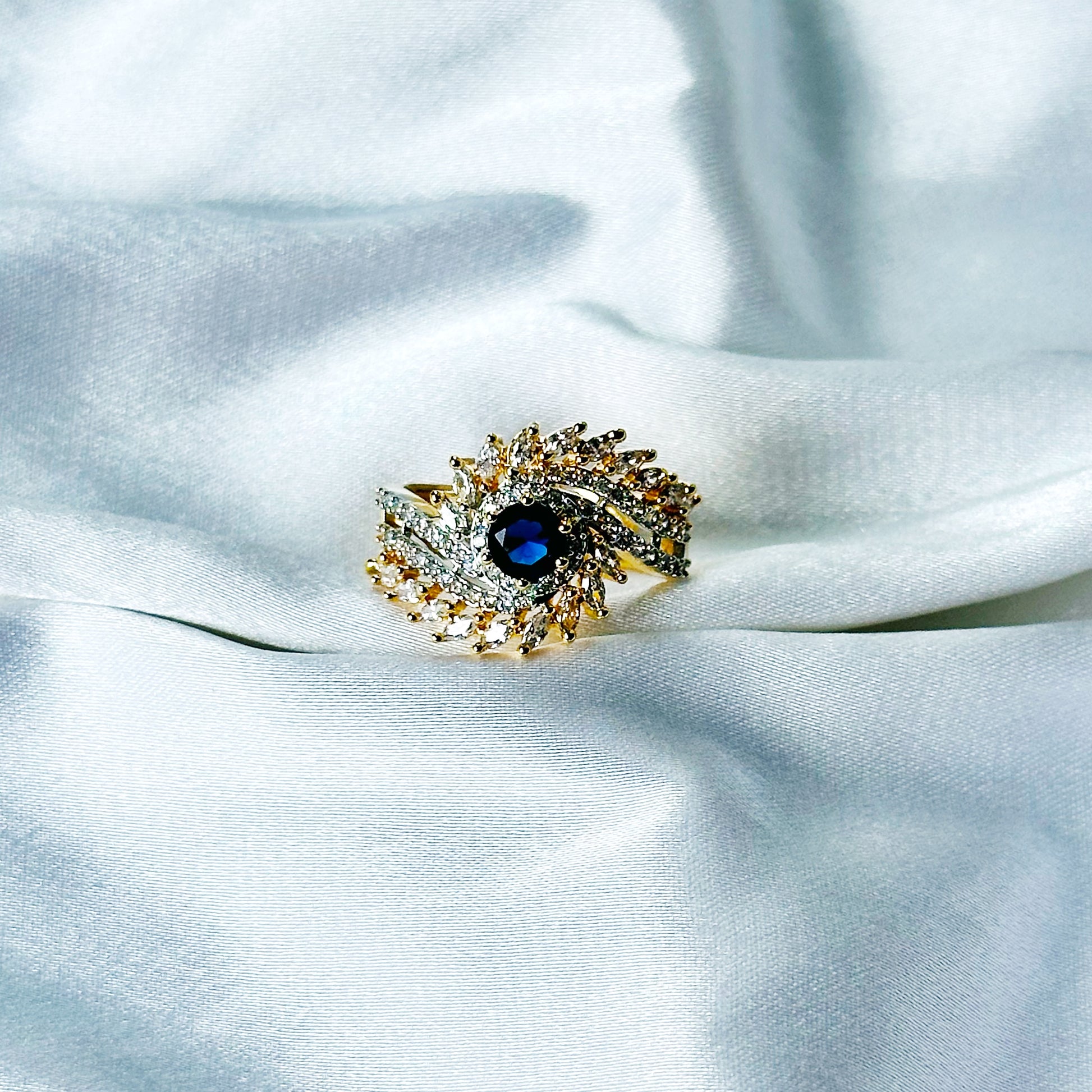 Blue Sapphire Cubic Zircon American Diamond Gold/Silver Plated Adjustable Ring