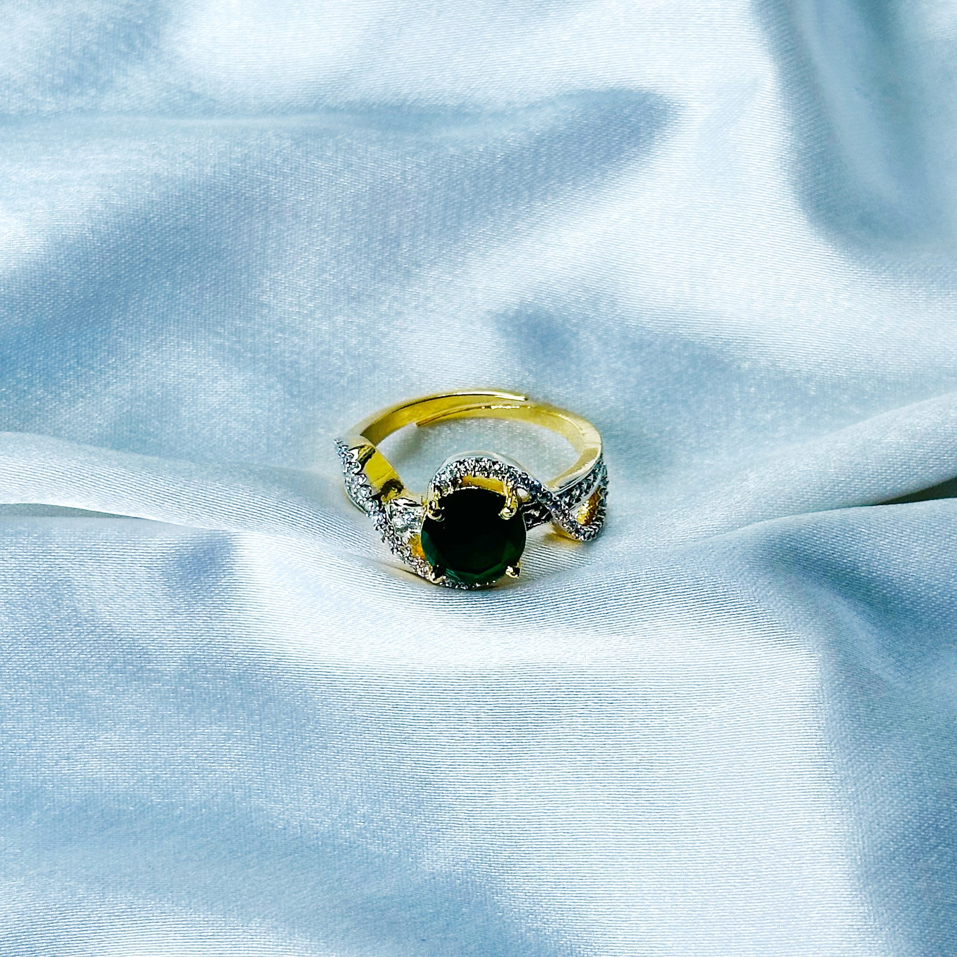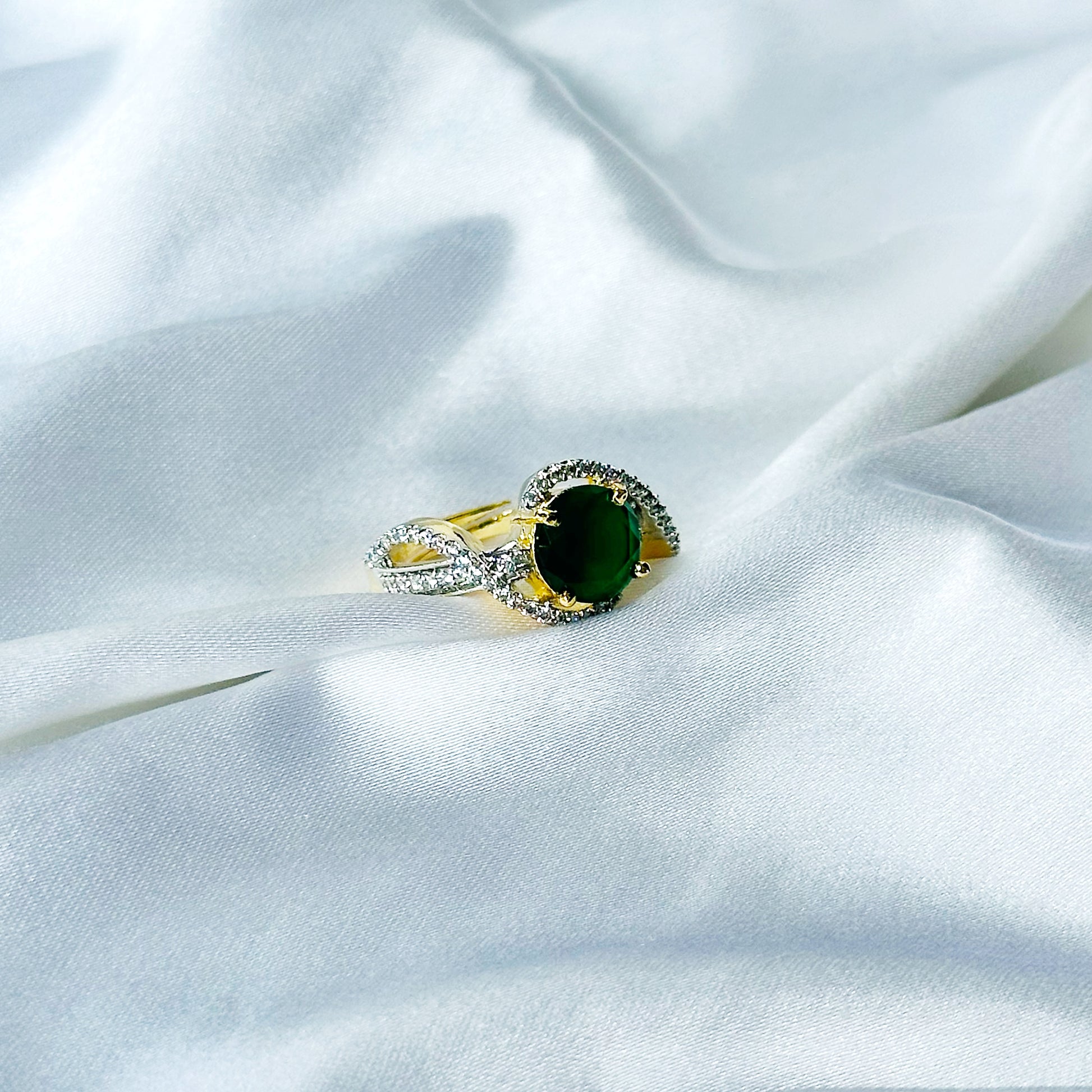 Green Emerald Cubic Zircon American Diamond Gold/Silver Plated Adjustable Ring