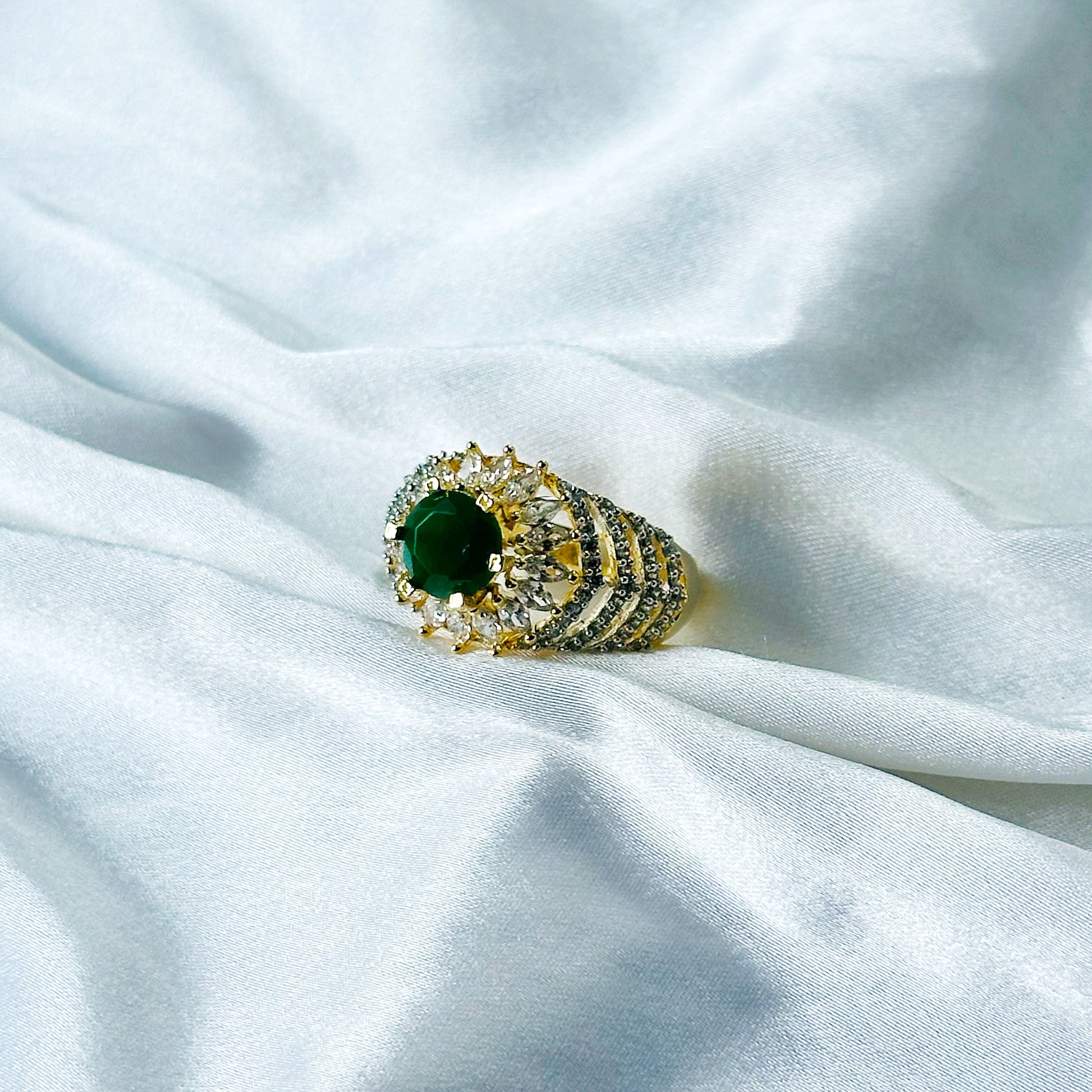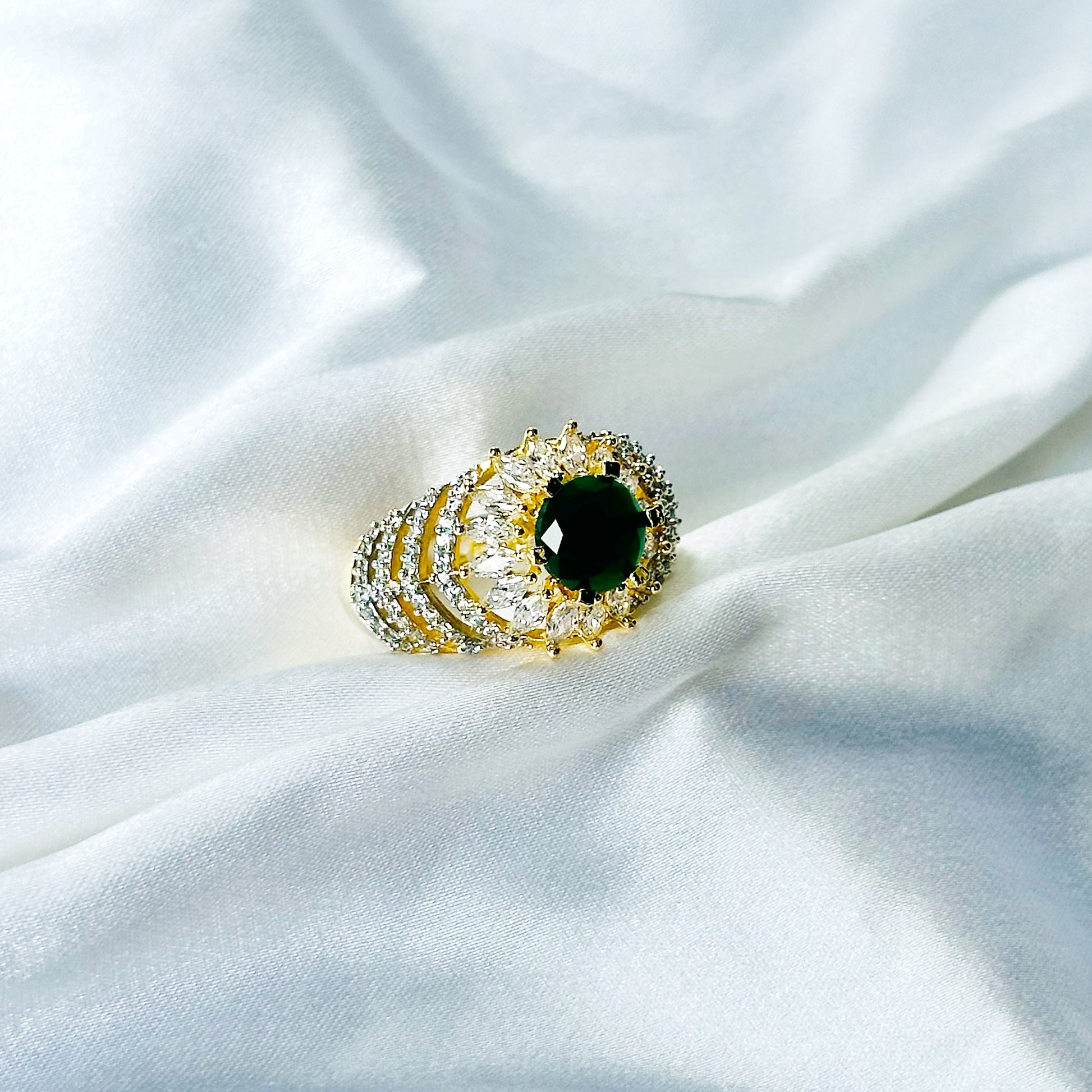 Green Emerald Cubic Zircon American Diamond Gold/Silver Plated Adjustable Ring