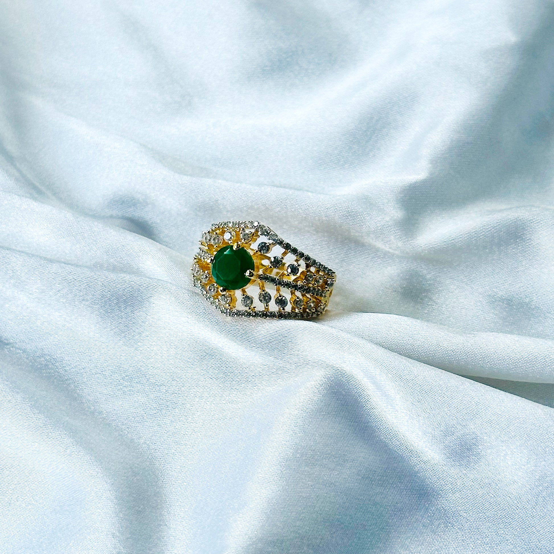 Green Emerald Cubic Zircon American Diamond Gold/Silver Plated Adjustable Ring
