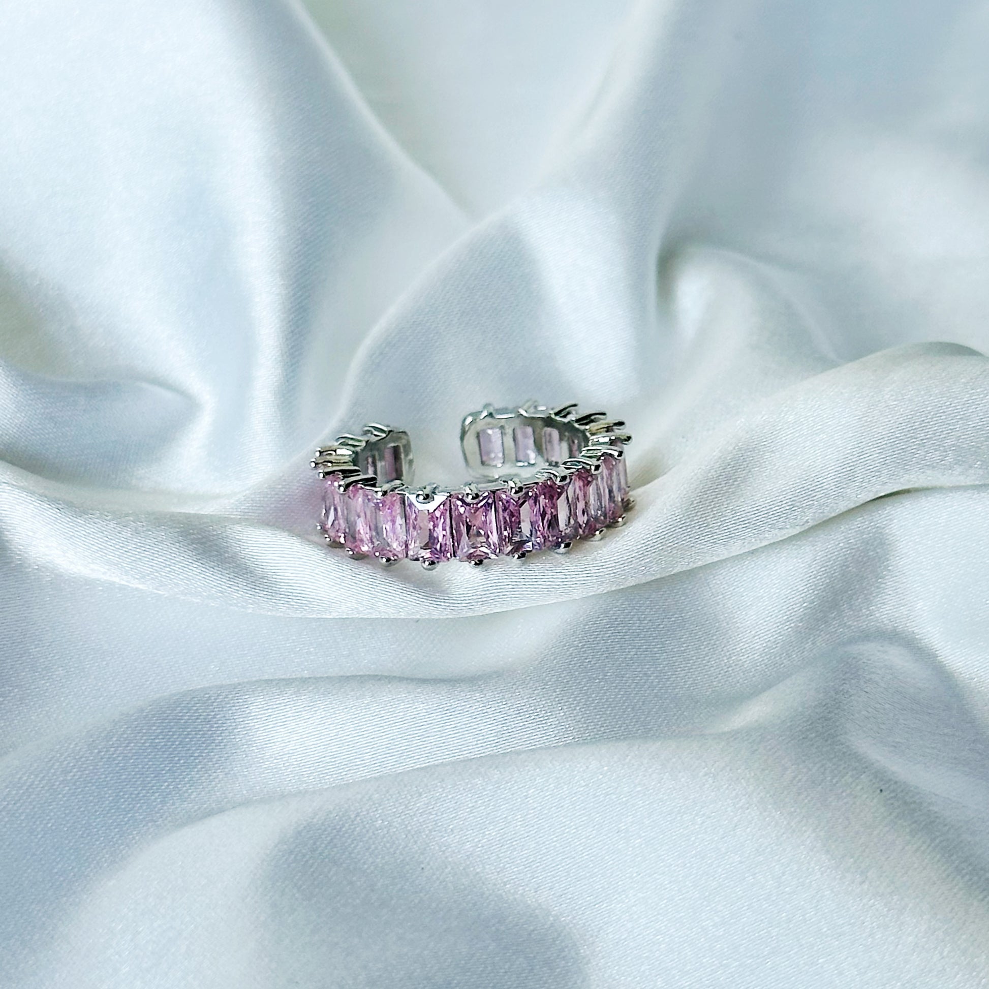Matrix Design Pink Topaz Cubic Zircon American Diamond Silver Plated Adjustable Ring