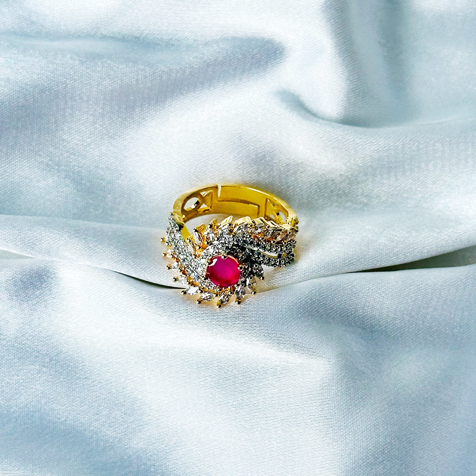 Red Ruby Cubic Zircon American Diamond Gold/Silver Plated Adjustable Ring