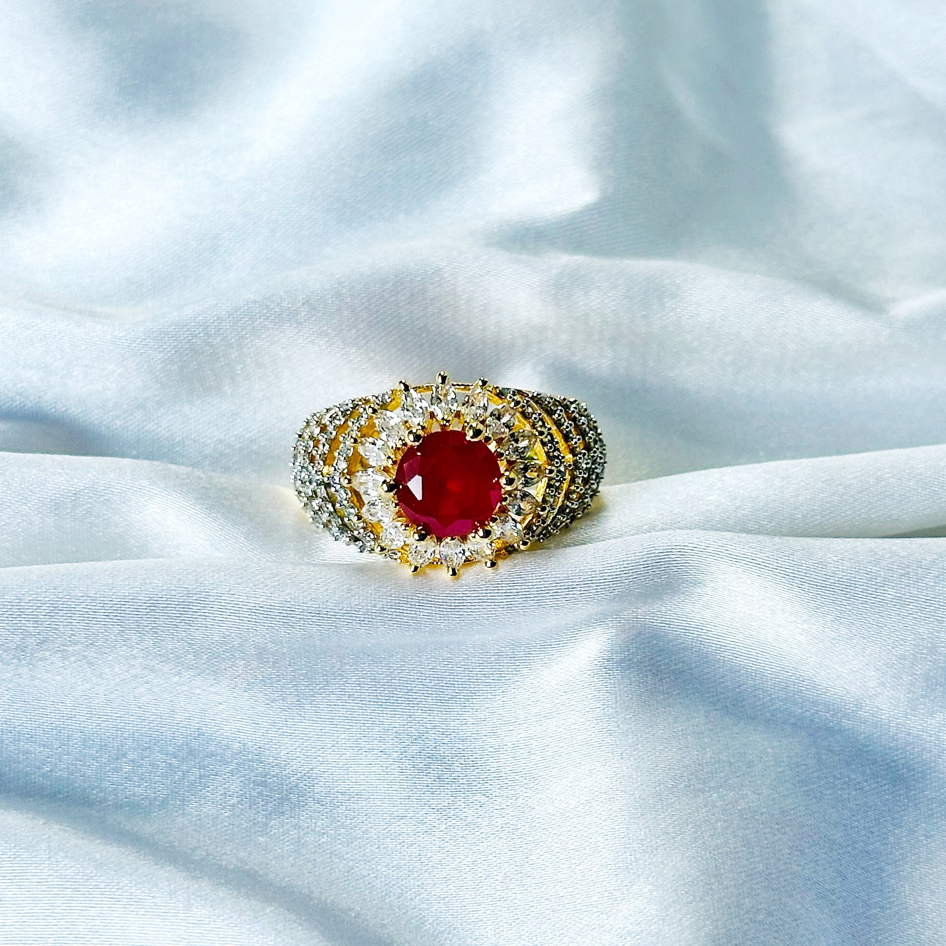Red Ruby Cubic Zircon American Diamond Gold/Silver Plated Adjustable Ring