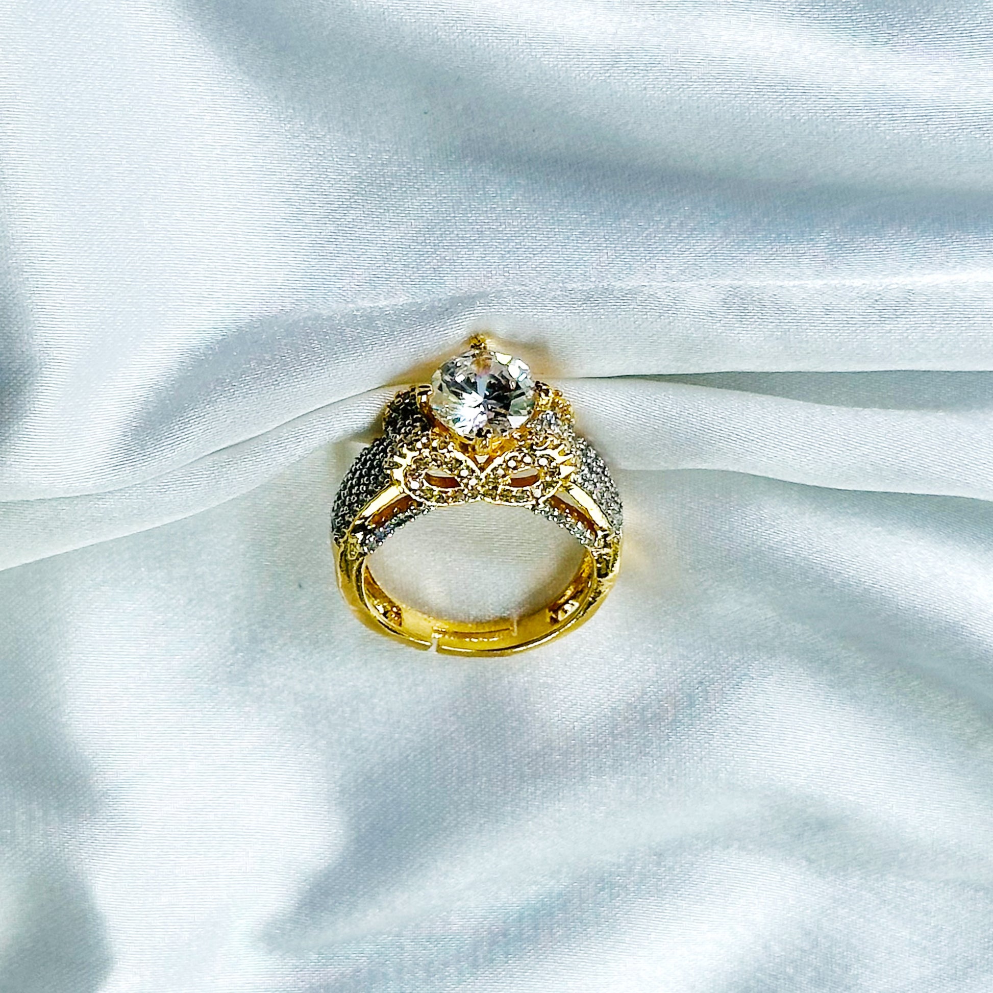 Solitaire Cubic Zircon American Diamond Gold/Silver Plated Adjustable Ring