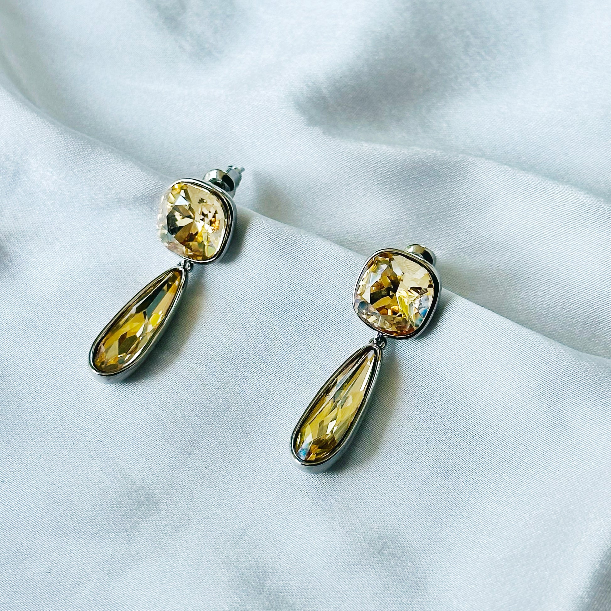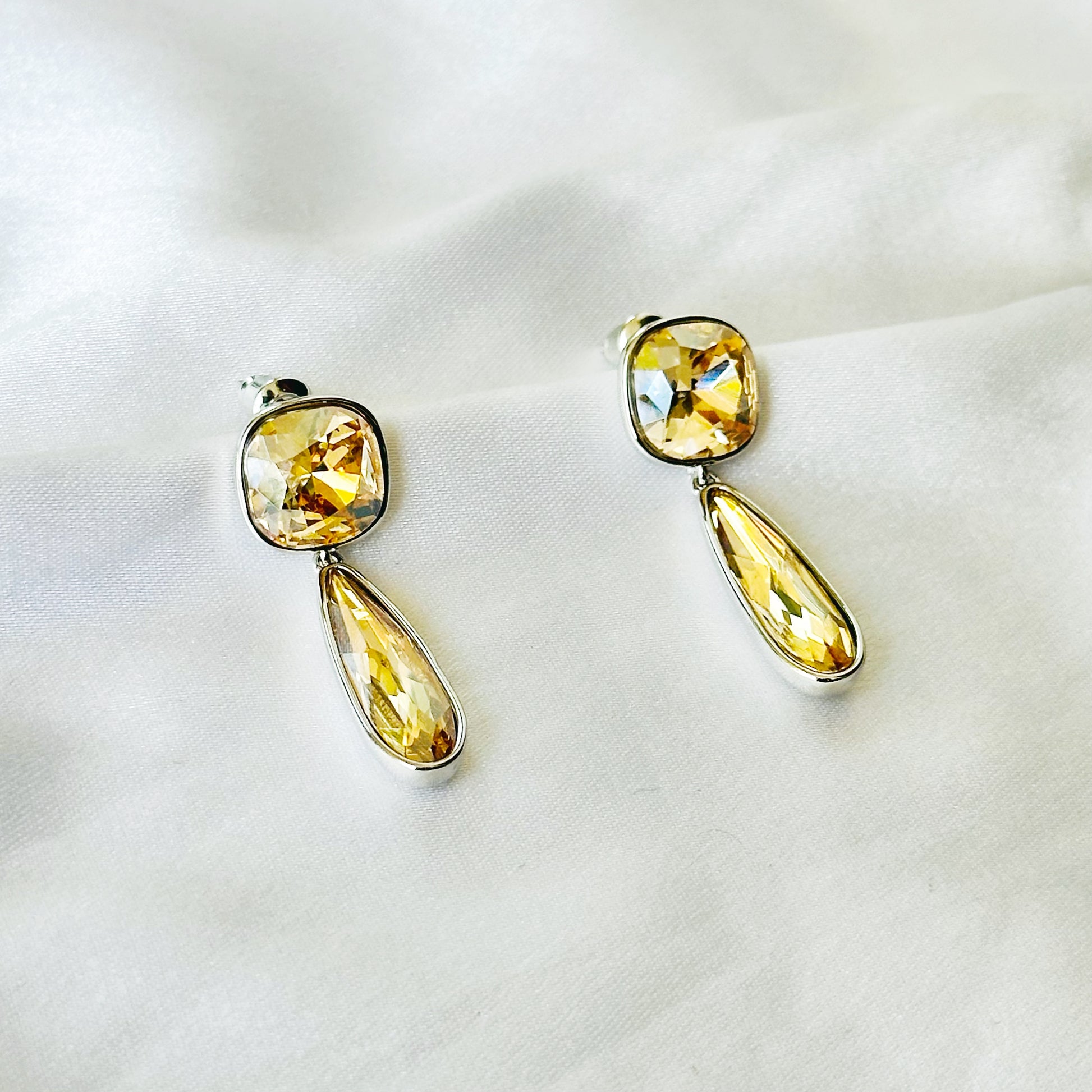Light Yellow Topaz Swarovski Crystal Silver Plated Earrings