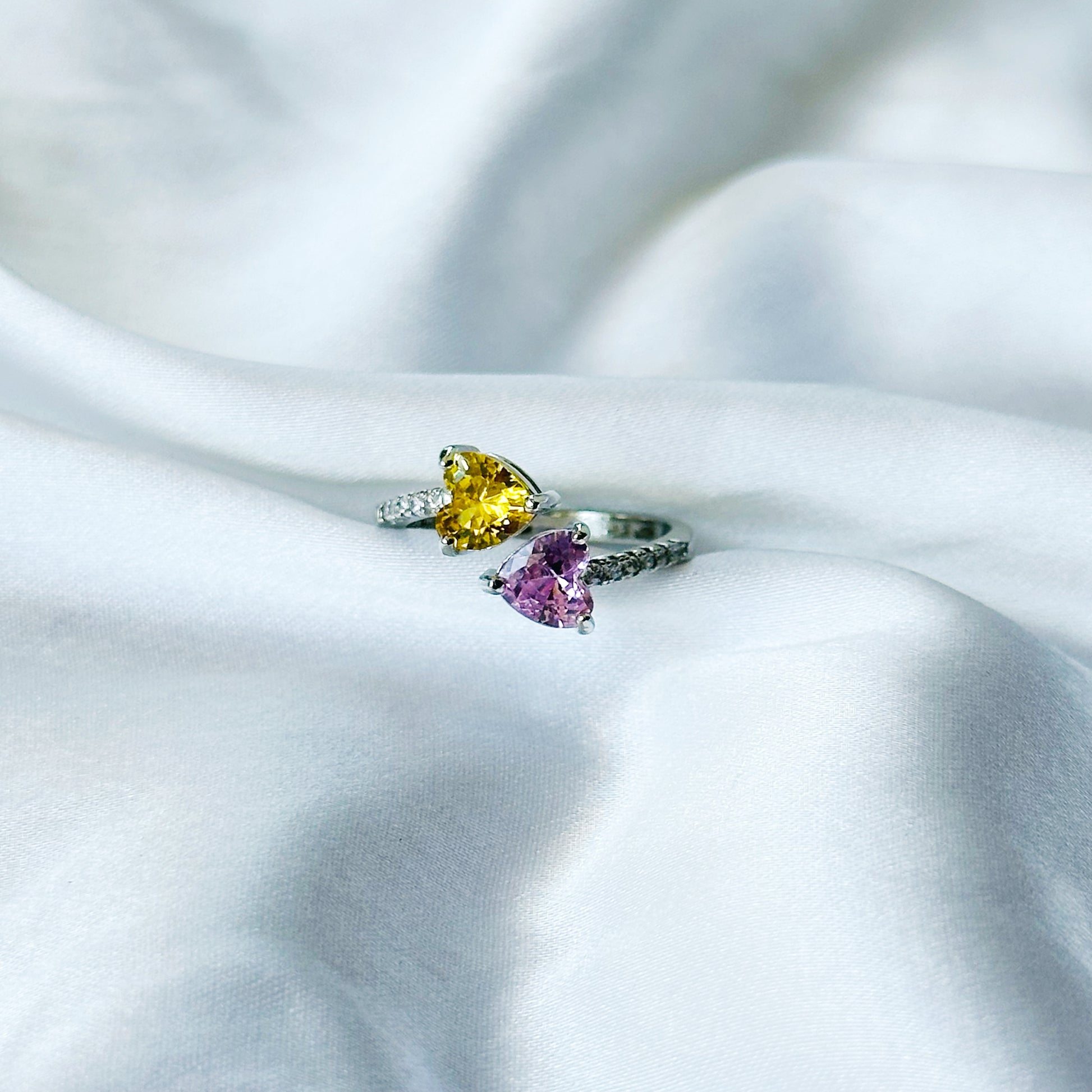 Yellow Topaz/Pink Topaz Cubic Zircon American Diamond Silver Plated Adjustable Ring